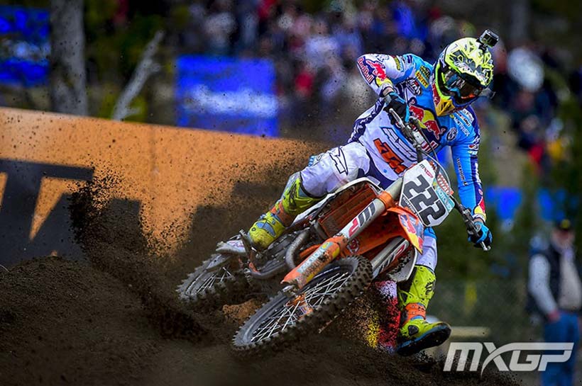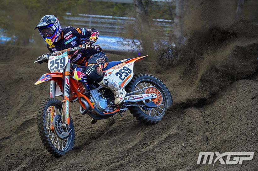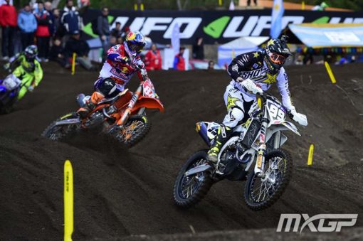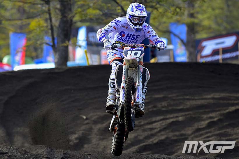 MXGP Race 2 Top Ten: 1. Tim Gajser (SLO, Honda), 34:47.423; 2. Antonio Cairoli (ITA, KTM), +0:03.936; 3. Romain Febvre (FRA, Yamaha), +0:07.794; 4. Jeremy Van Horebeek (BEL, Yamaha), +0:11.910; 5. Maximilian Nagl (GER, Husqvarna), +0:19.640; 6. Glenn Coldenhoff (NED, KTM), +0:40.886; 7. Kevin Strijbos (BEL, Suzuki), +0:47.977; 8. Valentin Guillod (SUI, Yamaha), +0:51.197; 9. Shaun Simpson (GBR, KTM), +0:53.609; 10. Christophe Charlier (FRA, Husqvarna), +0:54.351
