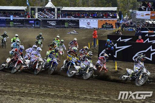 MXGP Race 1 Top Ten: 1. Maximilian Nagl (GER, Husqvarna), 34:29.721; 2. Antonio Cairoli (ITA, KTM), +0:05.185; 3. Tim Gajser (SLO, Honda), +0:07.776; 4. Evgeny Bobryshev (RUS, Honda), +0:11.472; 5. Jeremy Van Horebeek (BEL, Yamaha), +0:12.973; 6. Romain Febvre (FRA, Yamaha), +0:24.641; 7. Clement Desalle (BEL, Kawasaki), +0:34.253; 8. Shaun Simpson (GBR, KTM), +0:40.168; 9. Glenn Coldenhoff (NED, KTM), +0:46.162; 10. Tommy Searle (GBR, Kawasaki), +0:52.900