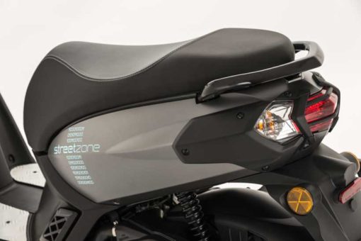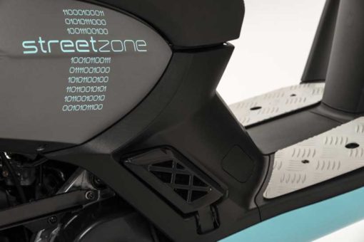 Το νέο Streetzone μαγνητίζει τα βλέμματα στο πέρασμά του με τη μοντέρνα σχεδίασή του, τα έντονα, trendy χρώματα και τα ιδιαίτερα γραφικά του. Τη δυναμική προσωπικότητα του scooter τονίζουν το γυμνό τιμόνι, οι sport καθρέφτες και εξάτμιση. Οι μαύρες γρίλιες που πλαισιώνουν τα φώτα εμπρός και πίσω, οι αλουμινένιες επενδύσεις στο δάπεδο και τα μαρσπιέ συνεπιβάτη με διάτρητο σχεδιασμό, προσδίδουν ξεχωριστό στυλ στο Streetzone. Προσεγμένο στη λεπτομέρεια, με ποιοτικό φινίρισμα, το Streetzone διαθέτει ψηφιακό πίνακα οργάνων με LCD οθόνη που παρέχει όλες τις απαραίτητες ενδείξεις κατά την οδήγηση.
