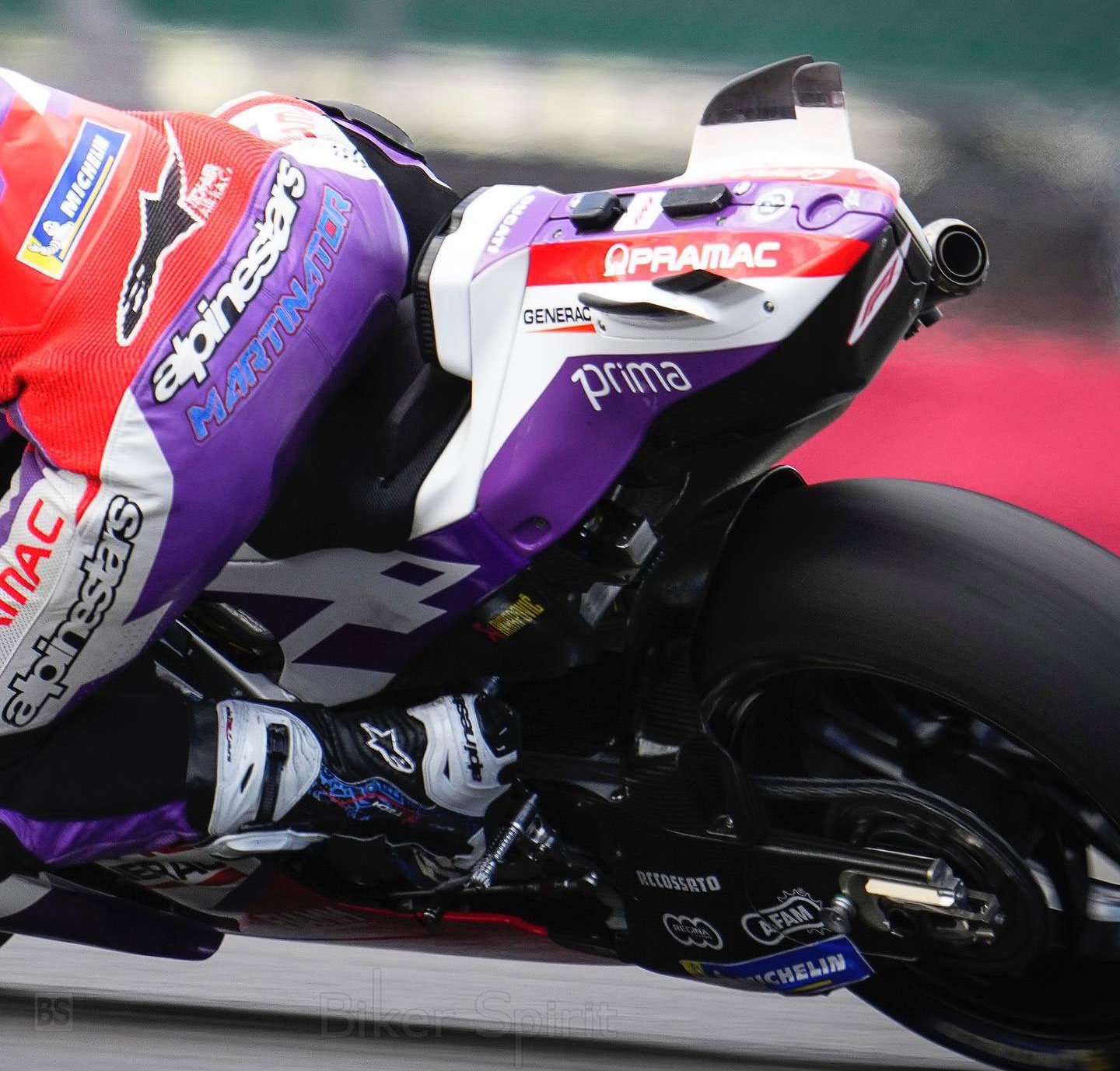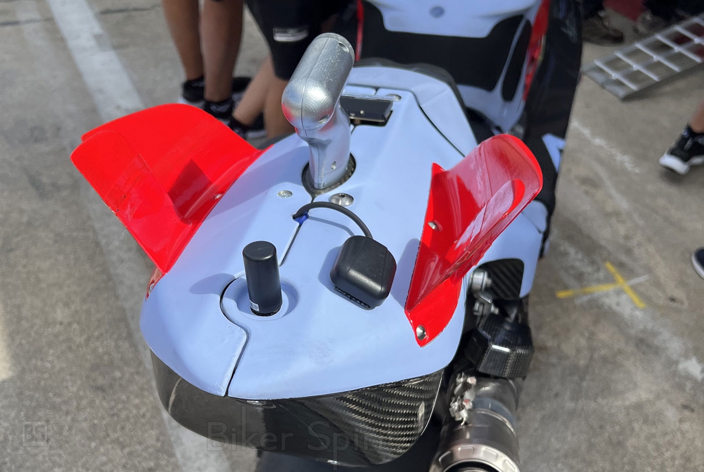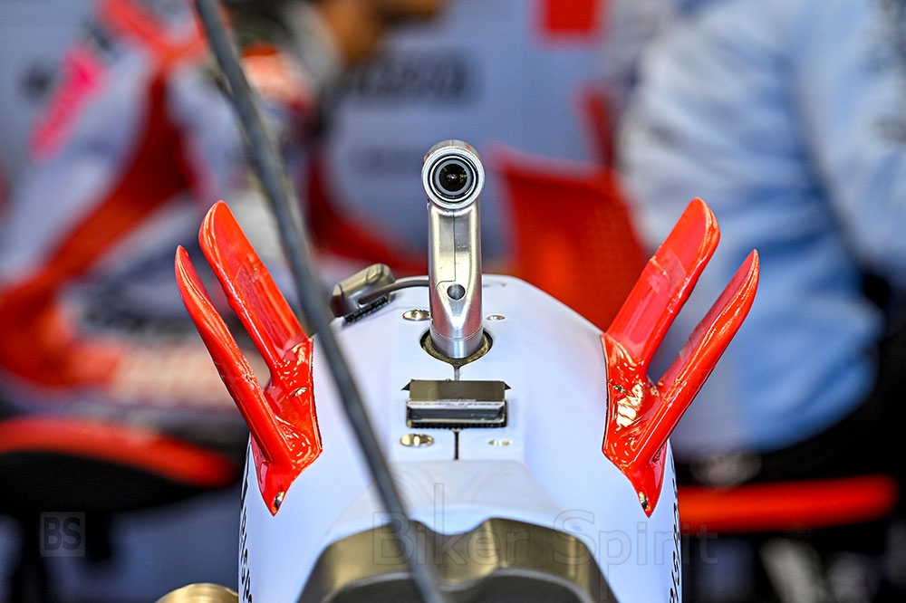 Οι οδηγοί της δορυφορικής Ducati της Pramac και της Gresini με τους Jorge Martin και Enea Bastianini δοκίμασαν νέα αεροδυναμικά φτερά στην ουρά της Desmosedici, που θυμίζουν ουρά δεινόσαυρου!