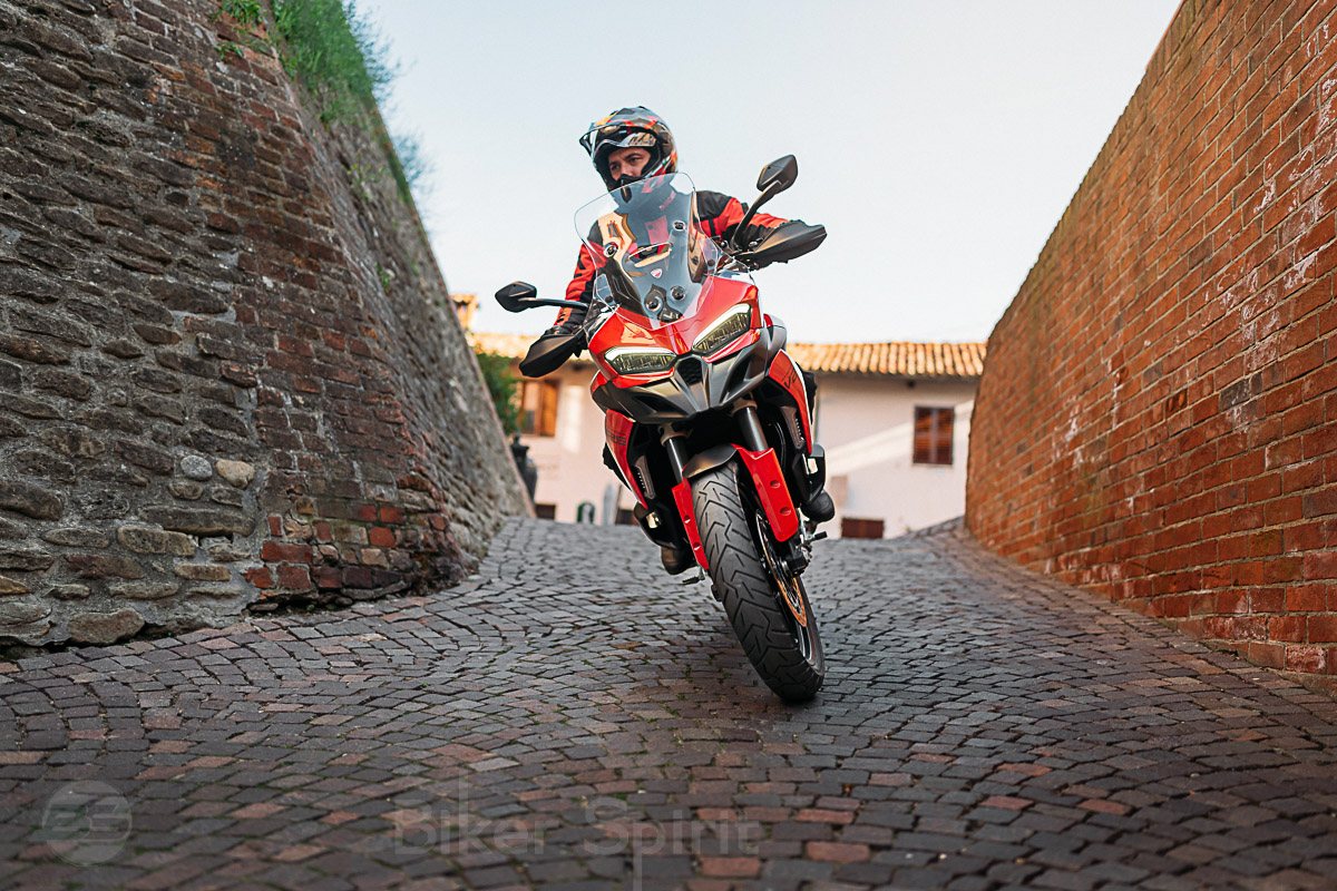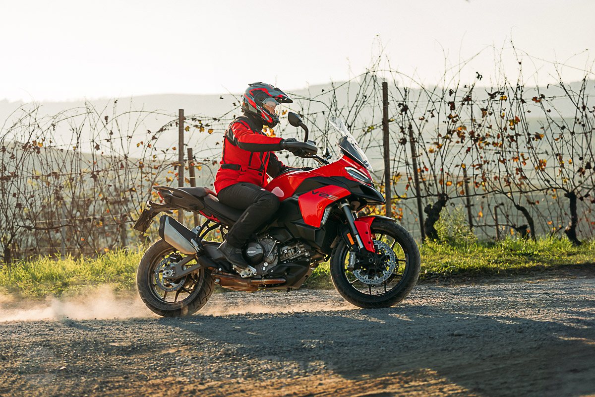 Όλα αυτά, σε συνδυασμό με τον νέο κινητήρα V2, επιτρέπουν στην Multistrada να φτάσει σε εξαιρετικά χαμηλό βάρος: μόνο 199 κιλά πλήρης υγρών χωρίς καύσιμο, για την έκδοση V2 και 202 κιλά για την έκδοση V2 S εξοπλισμένη με ημι-ενεργή ανάρτηση.