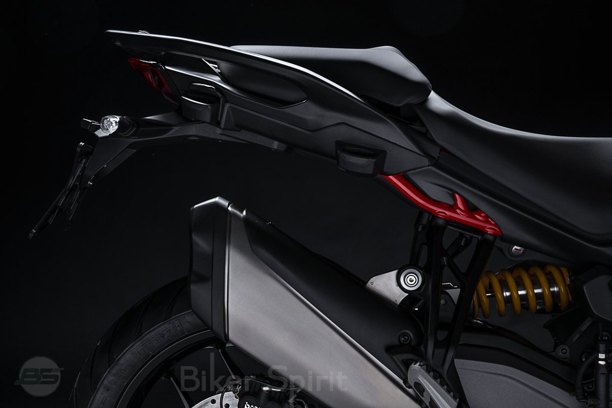 Επιπλέον, η λειτουργία ελάχιστης προφόρτισης επιτρέπει στο χαμήλωμα της πίσω ανάρτησης με το απλό πάτημα ενός κουμπιού, διευκολύνοντας την επαφή των ποδιών στο έδαφος, ειδικά όταν είναι πλήρως φορτωμένη και με συνοδηγό. Όπως και στη νέα Multistrada V4, οι λειτουργίες της ανάρτησης μπορούν να επιλεγούν ανεξάρτητα από τις λειτουργίες οδήγησης ώστε να επιλεχθεί η προτιμώμενη βαθμονόμηση ανάρτησης, διατηρώντας παράλληλα αμετάβλητες τις παραμέτρους ηλεκτρονικού ελέγχου και την απόκριση του κινητήρα.