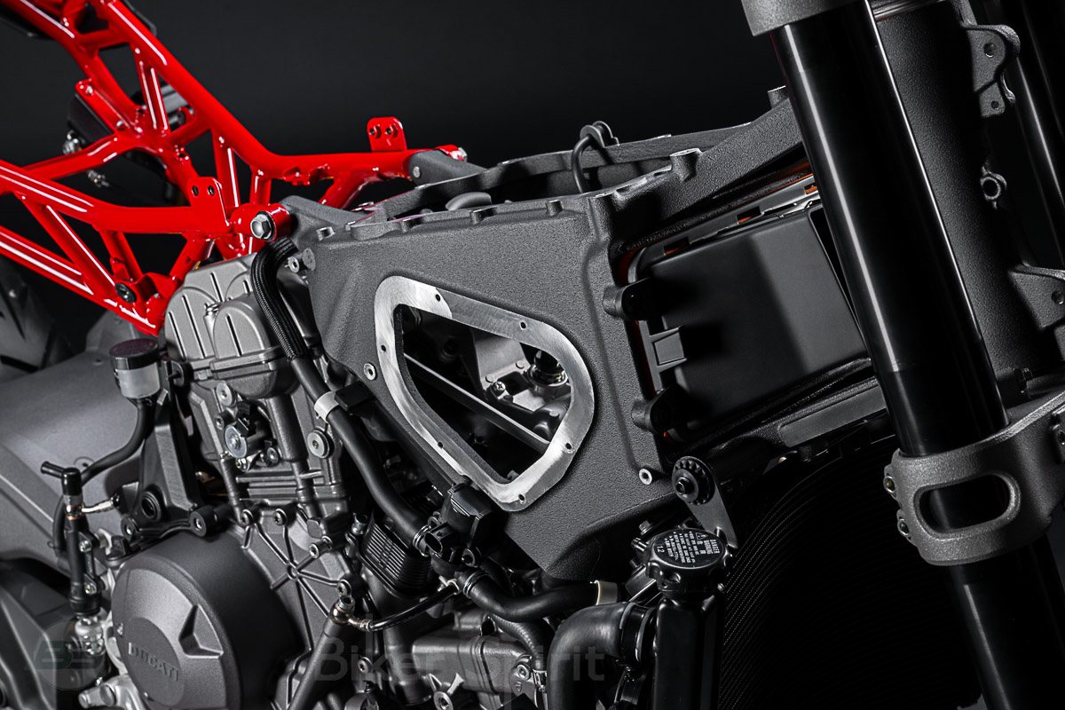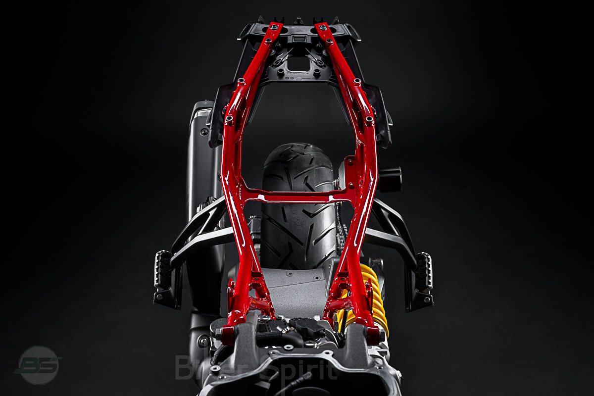 - Σχεδιασμένη γύρω από τον νέο κινητήρα Ducati V2 και με πλαίσιο αλουμινίου monocoque, ζυγίζει 18 κιλάλιγότερο από το προηγούμενο μοντέλο