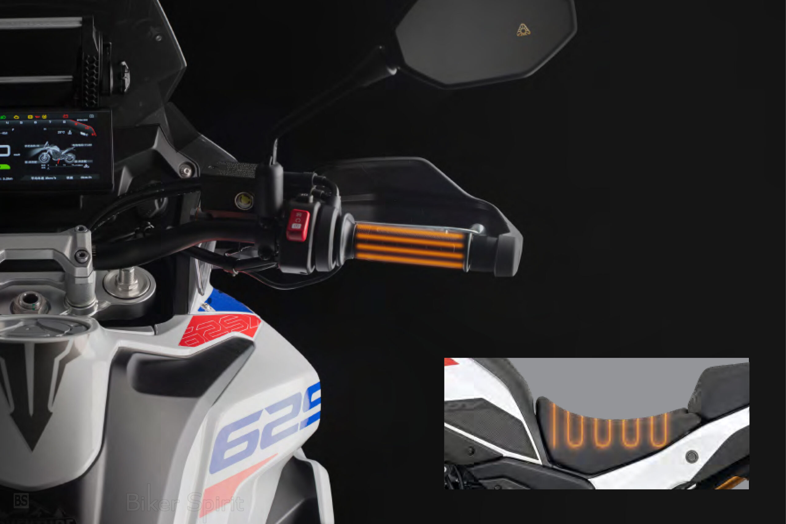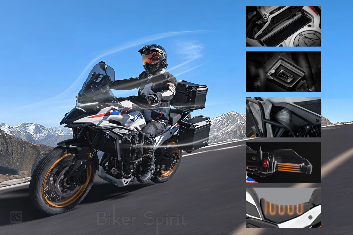 Παράλληλα, οι πλευρικοί αεροδυναμικοί εκτροπείς και τα πλαϊνά αεροδυναμικά στοιχεία εκατέρωθεν του ρεζερβουάρ συμβάλλουν στη βελτιωμένη διαχείριση του αέρα, περιορίζοντας την έκθεση του κορμού και των ποδιών στις υψηλότερες ταχύτητες. Στον εξοπλισμό περιλαμβάνονται θερμαινόμενα γκριπ, θερμαινόμενη σέλα αναβάτη, θύρα USB γρήγορης φόρτισης και παροχή 12V.