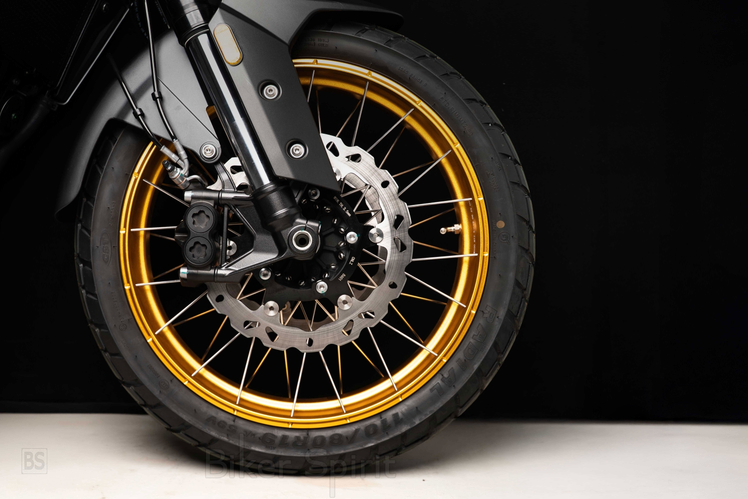Η πέδηση έχει σχεδιαστεί ώστε να ταιριάζει στον χαρακτήρα και τις δυνατότητες του μοντέλου. Μπροστά συναντάμε δύο δίσκους 300 mm με ακτινικές τετραπίστονες αντικριστές δαγκάνες TAISKO, ενώ πίσω υπάρχει δίσκος 240 mm. Το δικάναλο ABS συμπληρώνει το σύνολο, ενισχύοντας τον έλεγχο στις καθημερινές μετακινήσεις, στο ταξίδι και σε διαδρομές με αυξημένο φορτίο.
