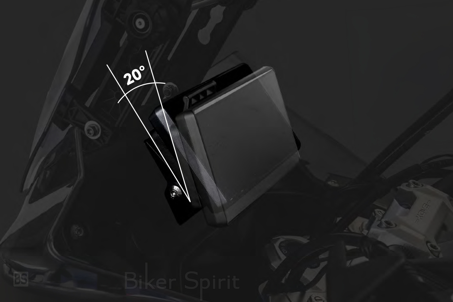 Η έγχρωμη TFT οθόνη 6,75” ξεχωρίζει για το μέγεθος, την ευκρίνειά της και τη δυνατότητα ρύθμισης της γωνίας της. Ο αναβάτης μπορεί να προσαρμόζει τη θέση της ανάλογα με τη στάση σώματος ή τις συνθήκες φωτισμού, περιορίζοντας αντανακλάσεις και βελτιώνοντας την αναγνωσιμότητα των ενδείξεων. Παράλληλα, η λειτουργία screen mirroring επιτρέπει την προβολή λειτουργιών από smartphone, ενισχύοντας τον σύγχρονο χαρακτήρα της μοτοσυκλέτας.