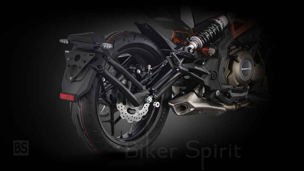 Αντίστοιχης φιλοσοφίας είναι και ο μινιμαλιστικός σχεδιασμός της ουράς, με τις λεπτές γραμμές της και το επίσης LED πίσω φωτιστικό σώμα σε σχήμα “Τ”, ενώ οι αεροτομές εκατέρωθεν της σέλας του συνεπιβάτη προσδίδουν ένα σπορ χαρακτήρα στο δικύλινδρο streetfighter.