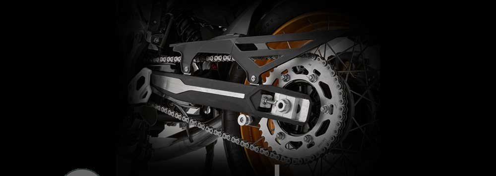 Αντίστοιχα, το ρυθμιζόμενο USD πιρούνι των 43mm της Marzocchi δένει στο πλαίσιο με δύο πανίσχυρες πλάκες, που πέρα από την ακαμψία και την ανώτερη ποιότητα λειτουργίας, εξασφαλίζει αμεσότητα στις εντολές του αναβάτη. Το ελαφρύ αλουμινένιο ψαλίδι έχει μειωμένη αδράνεια, βοηθώντας τη ρυθμιζόμενη πίσω ανάρτηση να αποσβένει ελεγχόμενα τις ανωμαλίες του δρόμου, προσφέροντας σταθερότητα, υψηλά επίπεδα κρατήματος, σε όλους τους δρόμους και άνεση.