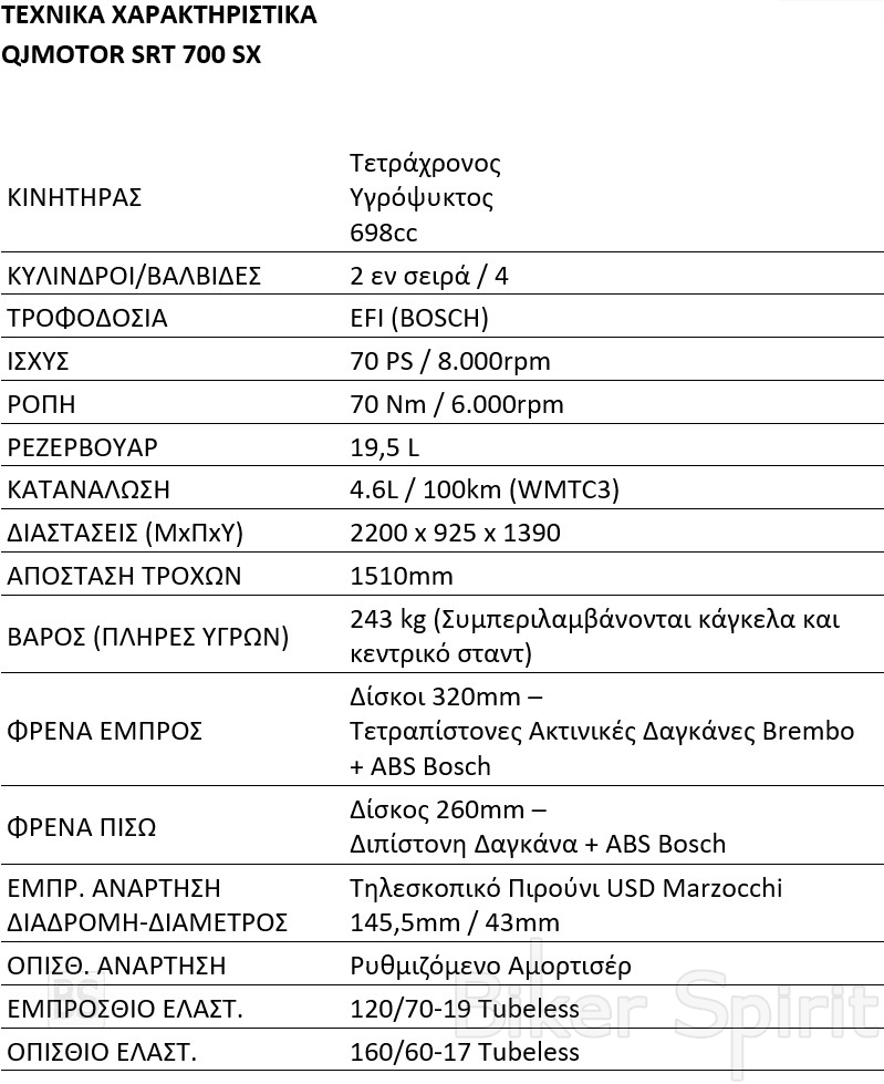 Η νέα QJMOTOR SRT 700SX με μια ματιά:
