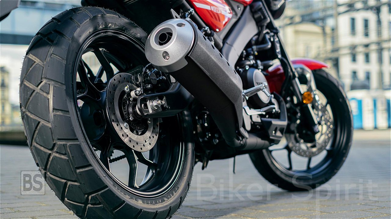 Οι μοτοσυκλέτες Sport Heritage της Yamaha είναι εμπνευσμένες από το παρελθόν και κατασκευασμένες για το μέλλον και τα ελαστικά με τα ευμεγέθη τακούνια της XSR125 τονίζουν τη διαχρονικά καλή εμφάνιση της μοτοσυκλέτας, παρέχοντας ταυτόχρονα υψηλά επίπεδα πρόσφυσης. Ο συνδυασμός του φαρδιού πίσω ελαστικού 140/70-17 και του μπροστινού ελαστικού 110/70-17 σε συνδυασμό με τις ελαφριές ζάντες 10 ακτινών από κράμα αλουμινίου εξασφαλίζει χαμηλό μη αναρτώμενο βάρος για αμεσότητα στις αντιδράσεις και προσφέρει σιγουριά κατά την οδήγηση με εύκολο και προβλέψιμο χειρισμό, καθιστώντας το ιδανική επιλογή για αρχάριους μοτοσυκλετιστές.