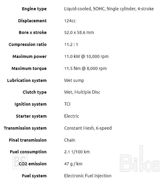 Λίγα είναι τα μοντέλα στην κατηγορία που προσφέρουν αυτές τις εντυπωσιακές προδιαγραφές σε προσιτή τιμή, ενώ ποιοτικές λεπτομέρειες κάνουν αισθητή την παρουσία τους σε ολόκληρη την μοτοσυκλέτα. Εκτός από τα ανεστραμμένα πιρούνια που περιγράφηκαν προηγουμένως, τον προβολέα LED και το πίσω φως LED και τον ισχυρό κινητήρα VVA των 125 κ.εκ. και 11 kW, αυτή η ελαφριά Sport Heritage μοτοσυκλέτα είναι εξοπλισμένη με μια μεγάλη σειρά ελκυστικών χαρακτηριστικών, όπως σέλα «tuck and roll», βαμμένοι λασπωτήρες και οι βραχίονες αλουμινίου που τονίζουν την προσοχή στη λεπτομέρεια που κάνει αυτήν την μοτοσυκλέτα να ξεχωρίζει.