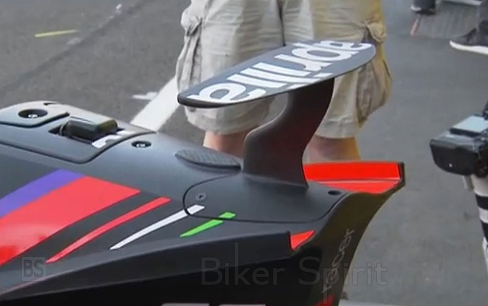 Η Aprilia, με τον οδηγό δοκιμών της, Lorenzo Savadori, δοκίμασαν κάτι που δεν είχαμε ξαναδεί: ένα μίνι σπόιλερ στην ουρά.