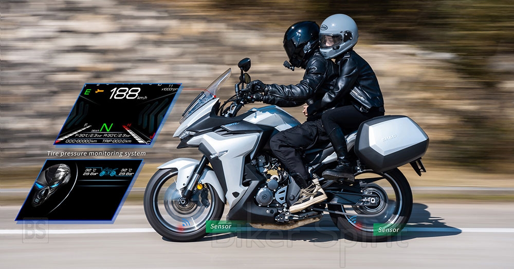 Η έγχρωμη οθόνη υψηλής ανάλυσης και φωτεινότητας (HD – HB), είναι κατασκευασμένη με τεχνολογία που επιτρέπει μεγαλύτερη γωνία θέασης και διαθέτει αυτόματη ρύθμιση επιπέδου φωτεινότητας, ανάλογα με τις συνθήκες φωτισμού στο περιβάλλον. Επιπρόσθετα, διαθέτει τέσσερα διαφορετικά interfaces (Recreation, Race, Street, Simplicity) για να προσωποποιήσει ο αναβάτης την εμφάνιση ανάλογα με την προτίμησή του, με ξεχωριστή θεματική προσέγγιση το καθένα. Πέρα από τις στάνταρ πληροφορίες που διαθέτει, συμπεριλαμβάνονται επίσης η ένδειξη θερμοκρασίας και πίεσης των ελαστικών, χάρη στους γερμανικής τεχνολογίας αισθητήρες του TPMS, καθώς και πλήρη καταγραφή των δεδομένων της μοτοσυκλέτας –ακόμη και βλαβών- για να κρατάει ενήμερο τον αναβάτη για την κατάσταση του οχήματός του σε πραγματικό χρόνο. Φυσικά δεν θα μπορούσε να λείπει η δυνατότητα διασύνδεσης μέσω πρωτοκόλλου Bluetooth με το κινητό του αναβάτη.
