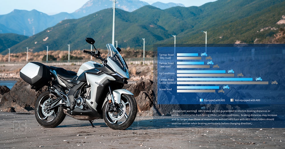 Σε ό,τι αφορά στα φρένα, αυτά αποτελούνται μπροστά από μία ακτινική δαγκάνα της ισπανικής J.Juan, που ανήκει πλέον στην εταιρία Brembo μετά την εξαγορά της, με τέσσερα έμβολα που συνεργάζονται με ένα δίσκο 320mm εμπρός και πίσω από μία δαγκάνα και έναν ακόμη δίσκο 265mm. Το πακέτο των φρένων συμπληρώνεται από το δικάναλο ABS της Bosch, ανεβάζοντας ακόμη υψηλότερα τα επίπεδα ασφάλειας που προσφέρει.