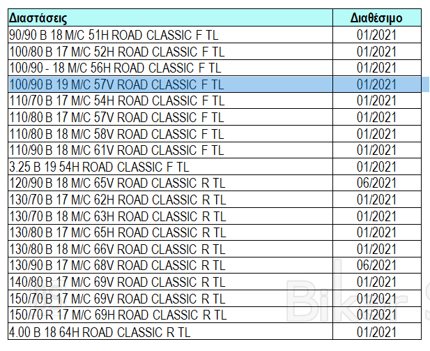Το MICHELIN Road Classic θα είναι διαθέσιμο σε εννέα εμπρόσθιες και δέκα οπίσθιες διαστάσεις: