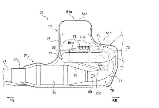 Τα νέα σχέδια που πατένταρε η Suzuki, δείχνουν ότι η εξάτμιση στο νέο μοντέλο θα βγαίνει χαμηλά στην δεξιά πλευρά του, αλλά θα είναι αρκετά ογκώδες.