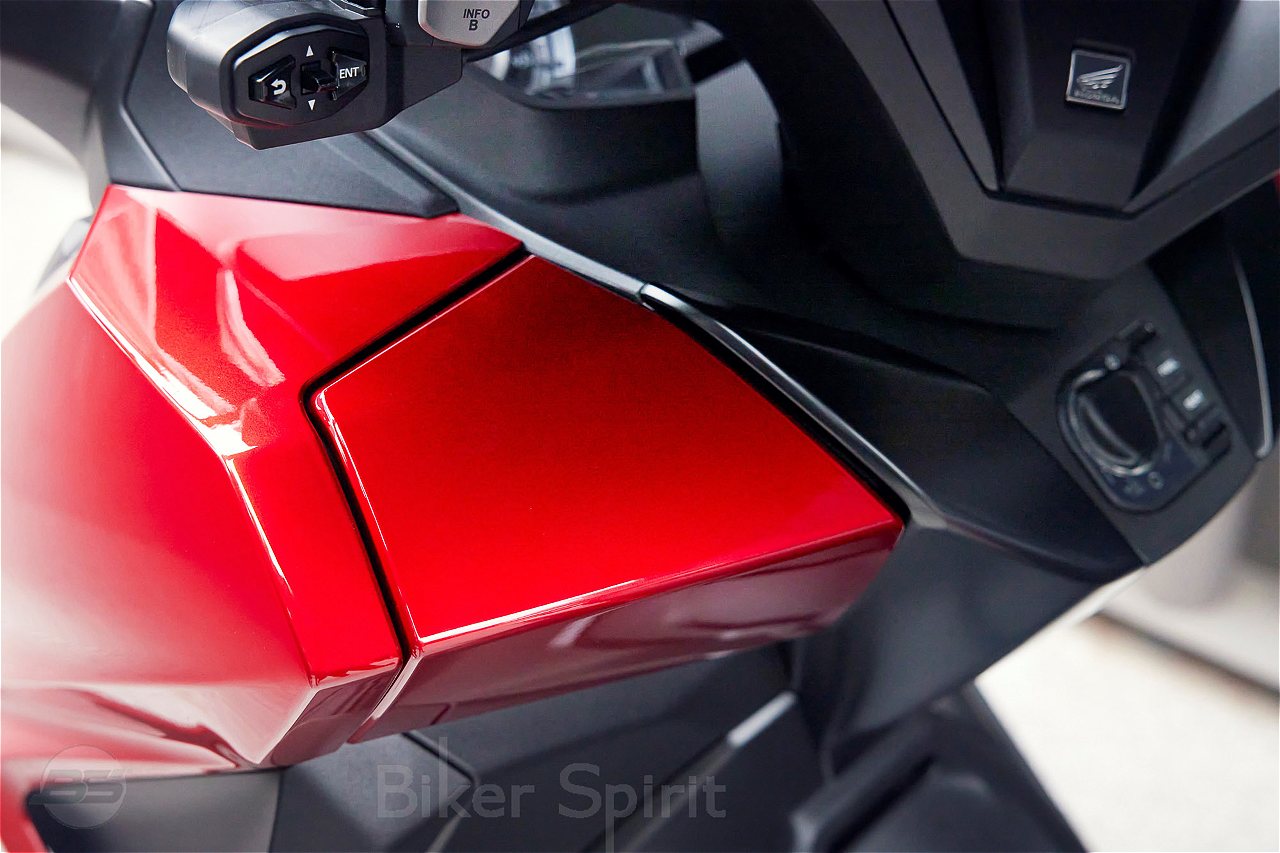 Το στυλ ανανεώνεται και η εξαιρετική πρακτικότητα παραμένει. Η ηλεκτρική ζελατίνα διαθέτει ρύθμιση σε μια διαδρομή μήκους 180mm που μεγιστοποιεί την αίσθηση ελευθερίας ή την προστασία από τον αέρα, ανάλογα με την επιθυμία του αναβάτη. Μία θύρα USB Type-C στο ντουλαπάκι προσφέρει ένα εύχρηστο σημείο φόρτισης, με τη λειτουργία Smart Key να αυξάνει την άνεση, ενώ υπάρχει χώρος για δύο full-face κράνη κάτω από τη σέλα.