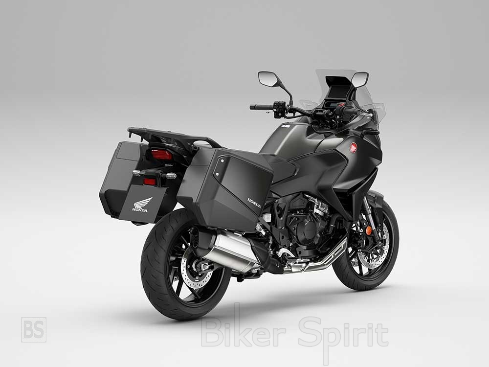 Το τελικό της εξάτμισης, επίσης, είναι χαμηλά τοποθετημένο, για μεγιστοποίηση της χωρητικότητας της βαλίτσας. Και οι αποσπώμενες βαλίτσες (στάνταρ εξοπλισμός) είναι ένα από τα κύρια χαρακτηριστικά της NT1100. Σκόπιμα σχεδιασμένες ώστε να είναι όσο το δυνατόν πιο διακριτικές για οδήγηση στην πόλη, το μέγιστο πλάτος τους δεν υπερβαίνει τα 901mm. Η χωρητικότητά τους είναι 33L (αριστερή) και 32L (δεξιά).