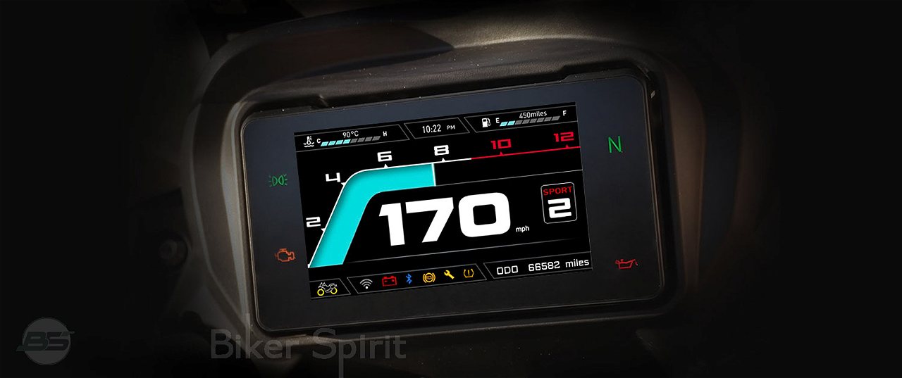 Σημαντική προσθήκη στον εξοπλισμό της MAVERICK 510X αποτελεί η TFT οθόνη 5 ιντσών, η οποία προσφέρει εξαιρετική ευκρίνεια και άμεση πληροφόρηση. Eνσωματώνει Bluetooth & WiFi, δίνοντας τη δυνατότητα σύνδεσης με smartphone και mirroring για προβολή ειδοποιήσεων και πλοήγηση. Επιπλέον περιλαμβάνει ενδείξεις για ταχύτητα, στροφές κινητήτα, σχέση ταχυτήτων, στάθμη καυσίμου, κατανάλωση, αυτονομία, θερμοκρασία κινητήρα, ειδοποίηση χαμηλής πίεσης ελαστικών (TPMS), επιλεγμένη λειτουργία ABS και TCS.