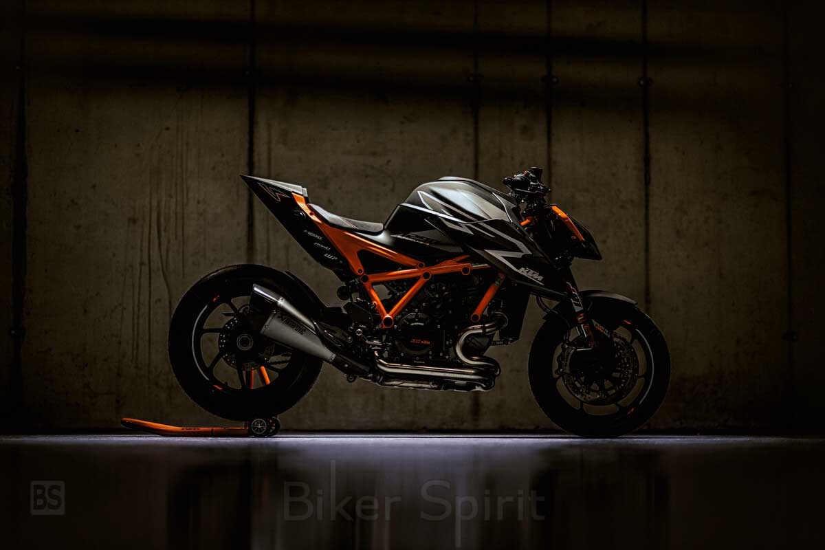 Αυτό περιλαμβάνει ένα προσαρμοσμένο δερμάτινο αγωνιστικό κοστούμι, ειδικά συμπληρωμένο με μοναδική επωνυμία KTM 1290 SUPER DUKE RR και ταιριαστό σχέδιο.