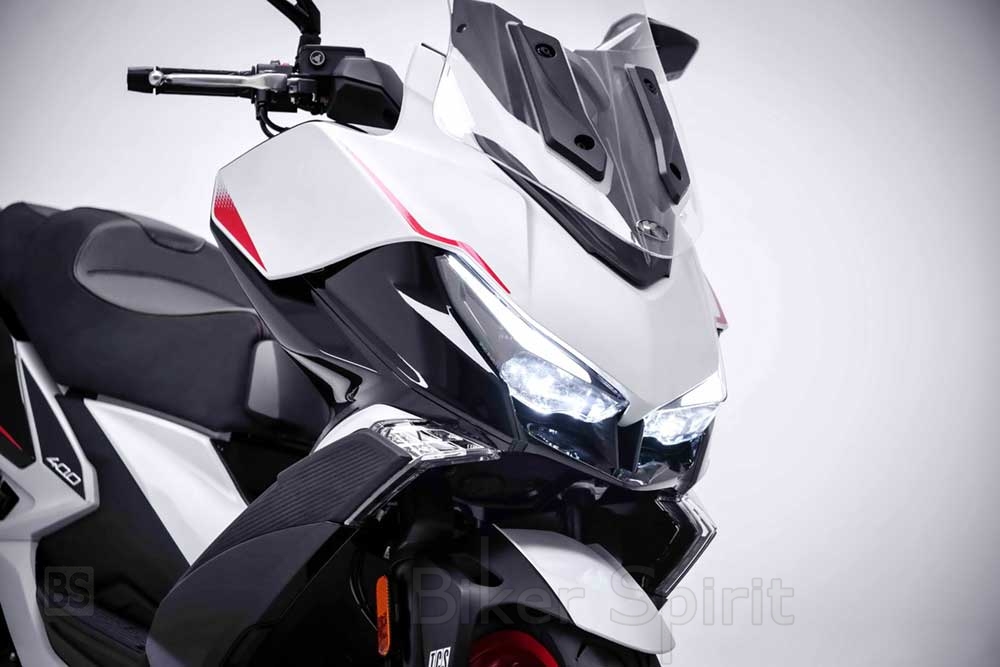 Το νέο VS 400 καταδεικνύει στο έπακρο τη φιλοσοφία “Power Simplicity” της σειράς Xciting μέσα από τις ουσιαστικές επεμβάσεις που έχει δεχθεί. Η σχεδίαση στο εμπρός τμήμα έχει αλλάξει ριζικά, με νέους προβολείς LED-DRL και αναθεωρημένα αεροδυναμικά πλαστικά και αεραγωγούς, εντείνoντας περαιτέρω την επιθετική και δυναμική σχεδιαστική προσέγγιση του μοντέλου. Κατά γενική ομολογία, οι νέες γραμμές του VS 400 περισσότερο θυμίζουν μια σύγχρονη supersport μοτοσυκλέτα παρά ένα megascooter με sport καταβολές.