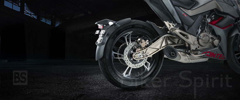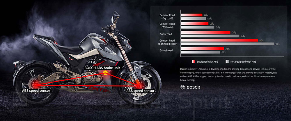 Διαθέτει ισχυρή δύναμη και αίσθηση πέδησης με μεγάλο δισκόφρενο 300mm εμπρός με διπίστονες δαγκάνες και δισκόφρενο 230mm πίσω, ελεγχόμενα από δικάναλο σύστημα ABS της BOSCH.