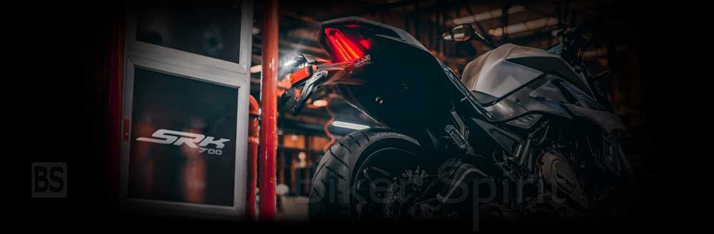 Οι δύο δίδυμοι LED προβολείς καταλήγουν σε μια αιχμηρή απόληξη, προσδίδοντας μια άκρως επιθετική όψη. Τα διακριτικά, επίσης LED, φλας τονίζουν ακόμη περισσότερο τη μινιμαλιστική διάθεση σχεδιασμού της SRK 700, ενώ η διακριτική LCD οθόνη που προβάλλει όλες τις απαραίτητες πληροφορίες, φροντίζει να παρεμβάλλονται μόνο τα ελάχιστα στην οπτική του αναβάτη με το δρόμο.