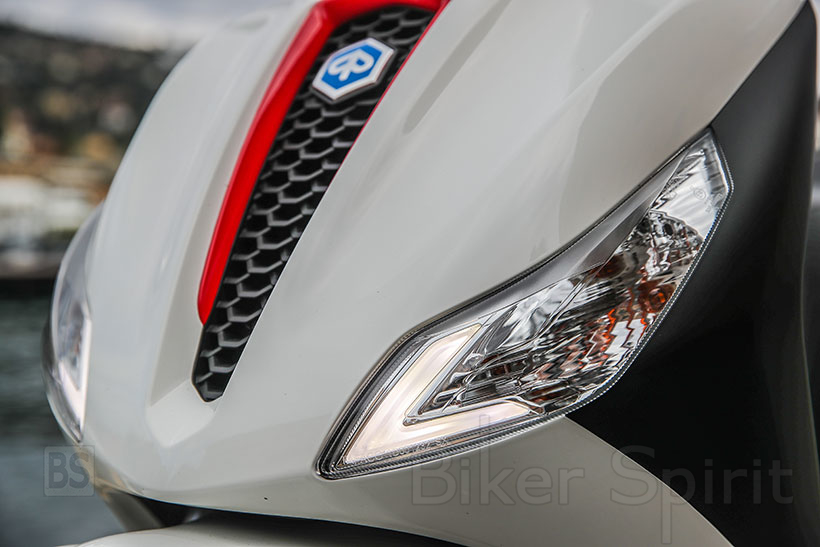 Στο κέντρο του τιμονιού, εξολοκλήρου επανασχεδιασμένο, ξεχωρίζει ο νέος εμπρόσθιος προβολέας LED, που αυξάνει σημαντικά την ορατότητα, προς όφελος της ενεργητικής ασφάλειας. Τα εμπρός και πίσω φώτα θέσης είναι επίσης LED.