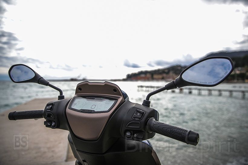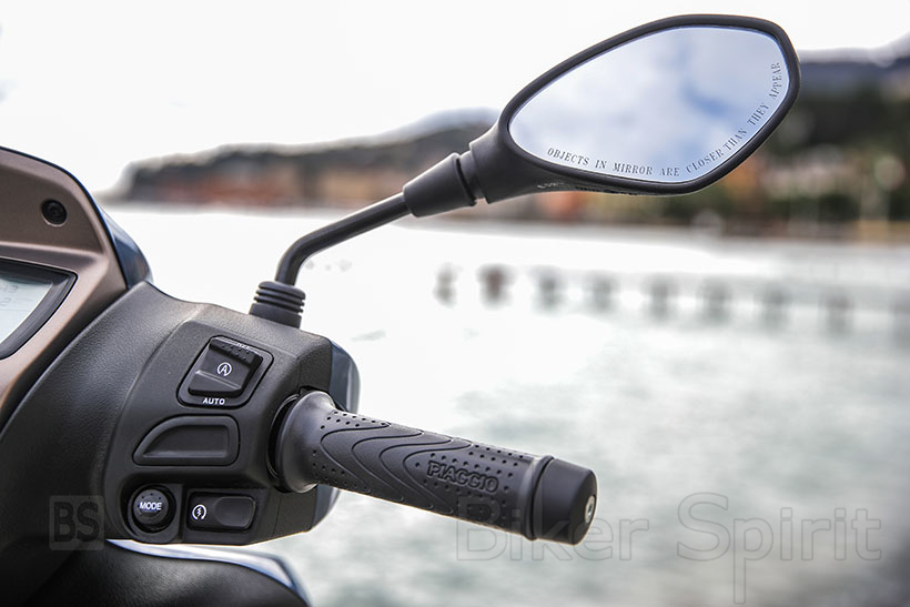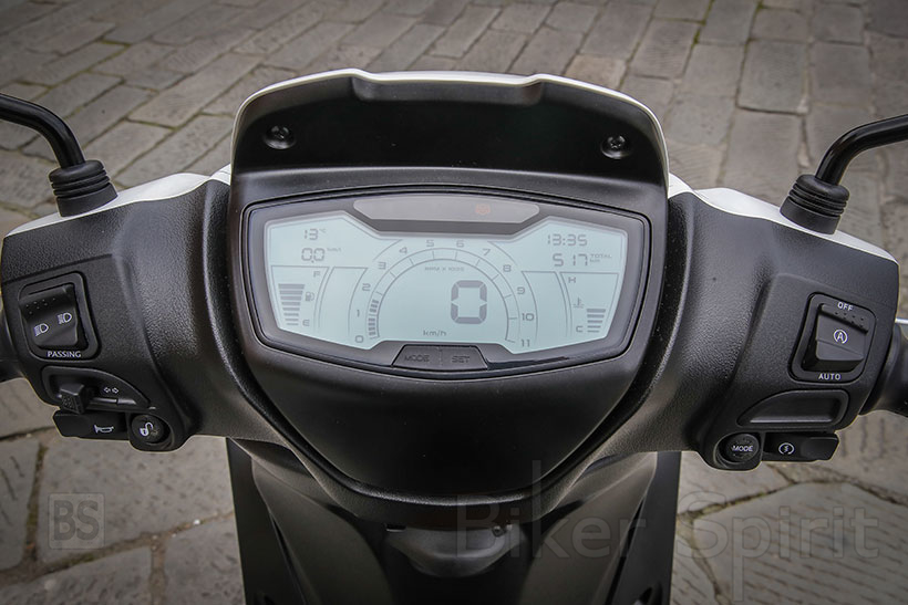 Με έναν ισορροπημένο συνδυασμό στυλ και λειτουργικότητας, το τιμόνι φιλοξενεί επίσης το ολοκαίνουριο πλήρως ψηφιακό LCD ταμπλό οργάνων. Η οθόνη, με το ψηφιακό ταχύμετρο και την κλίμακα του στροφόμετρου στο κέντρο, επιτρέπει την απεικόνιση ολικού και μερικού χιλιομετρητή, θερμοκρασία αέρα, ψηφιακό ρολόι, ενδείξεις στάθμης καυσίμου και θερμοκρασίας ψυκτικού υγρού, λυχνίες κινδύνου πάγου, ανοικτού πλαϊνού σταντ και «service». Εμφανίζει επίσης ένα πλήρες σύνολο ταξιδιωτικών πληροφοριών, οι οποίες μπορούν να επιλεγούν από το κουμπί MODE στο δεξί χειριστήριο ελέγχου: μέση και μέγιστη ταχύτητα, τρέχουσα και μέση κατανάλωση καυσίμου, αυτονομία και επίπεδο φόρτισης της μπαταρίας. Οι προειδοποιητικές λυχνίες προσφέρουν τη δυνατότητα ελέγχου όλων των λειτουργιών, από το «Start & Stop», το οποίο μπορεί να απενεργοποιηθεί από έναν διακόπτη στο δεξί ηλεκτρικό χειριστήριο, μέχρι τον κλασικό «έλεγχο ψεκασμού», τη ρεζέρβα καυσίμου, την χαμηλή πίεση λιπαντικού, την ενεργοποίηση ABS και το immobilizer.