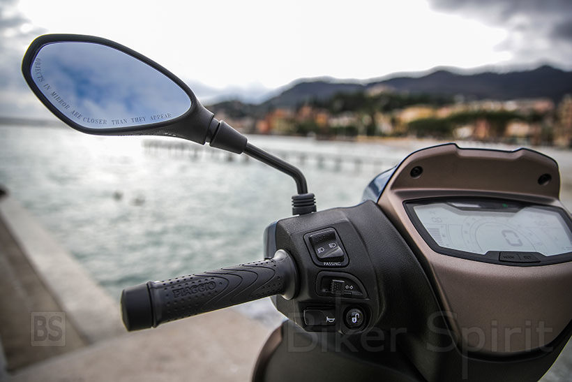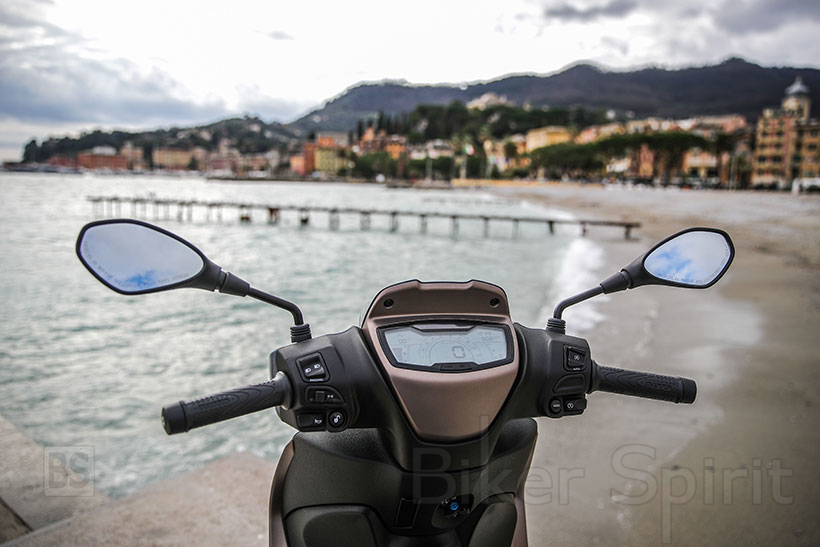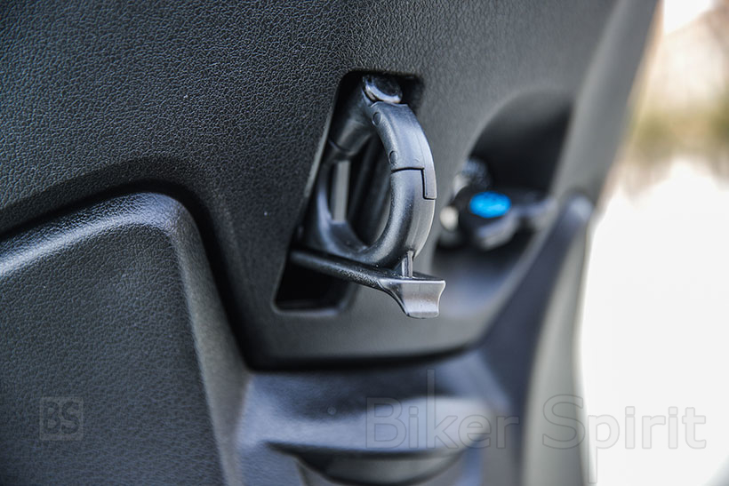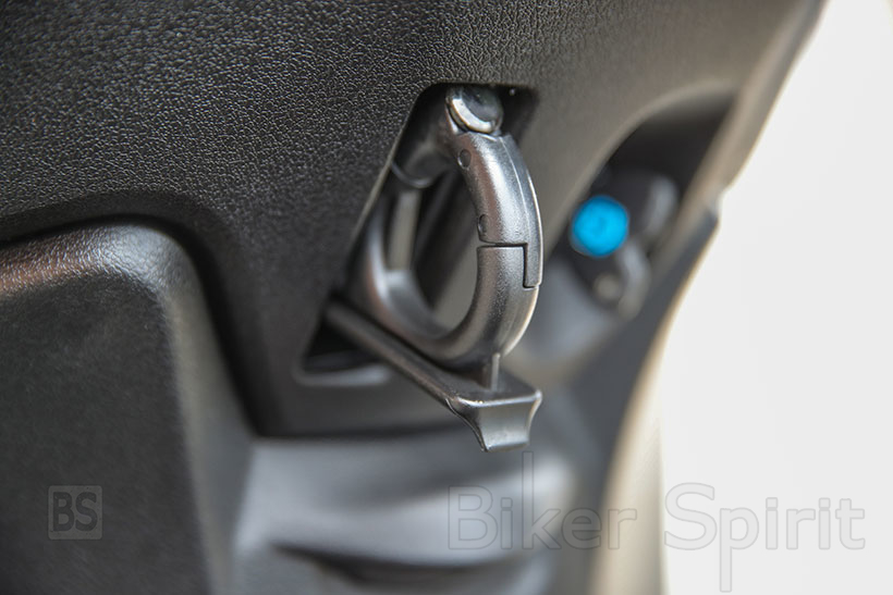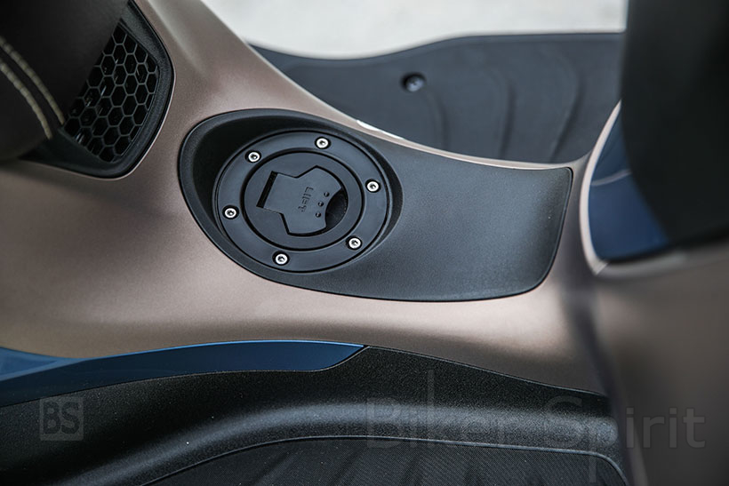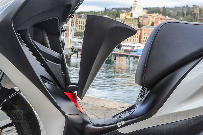 Στο εσωτερικό της ποδιάς υπάρχει ένα ευρύχωρο ντουλαπάκι με εύκολη πρόσβαση από τη θέση του οδηγού και στυλ που δένει αρμονικά με το εσωτερικό του τιμονιού και τη σέλα, θυμίζοντας ταμπλό αυτοκινήτου. Μέσα στο ντουλαπάκι υπάρχει θύρα USB, χρήσιμη για τη φόρτιση smartphone. Στο εσωτερικό της ποδιάς υπάρχει επίσης πρακτικός αναδιπλούμενος γάντζος για μεταφορά τσαντών.