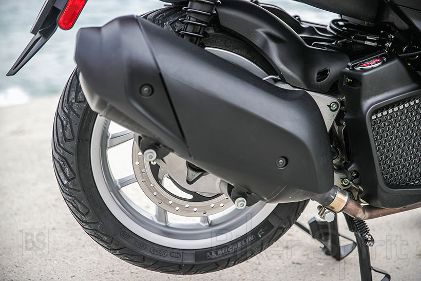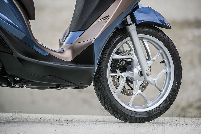 Ο μπροστινός τροχός 16 ιντσών παρέχει σταθερότητα, ασφάλεια και άνεση, ευθυγραμμίζοντας κάθετα ολόκληρο το εμπρός τμήμα. Οι ζάντες είναι αλουμινίου, με νέα σπορ σχεδίαση 6 μπράτσων.