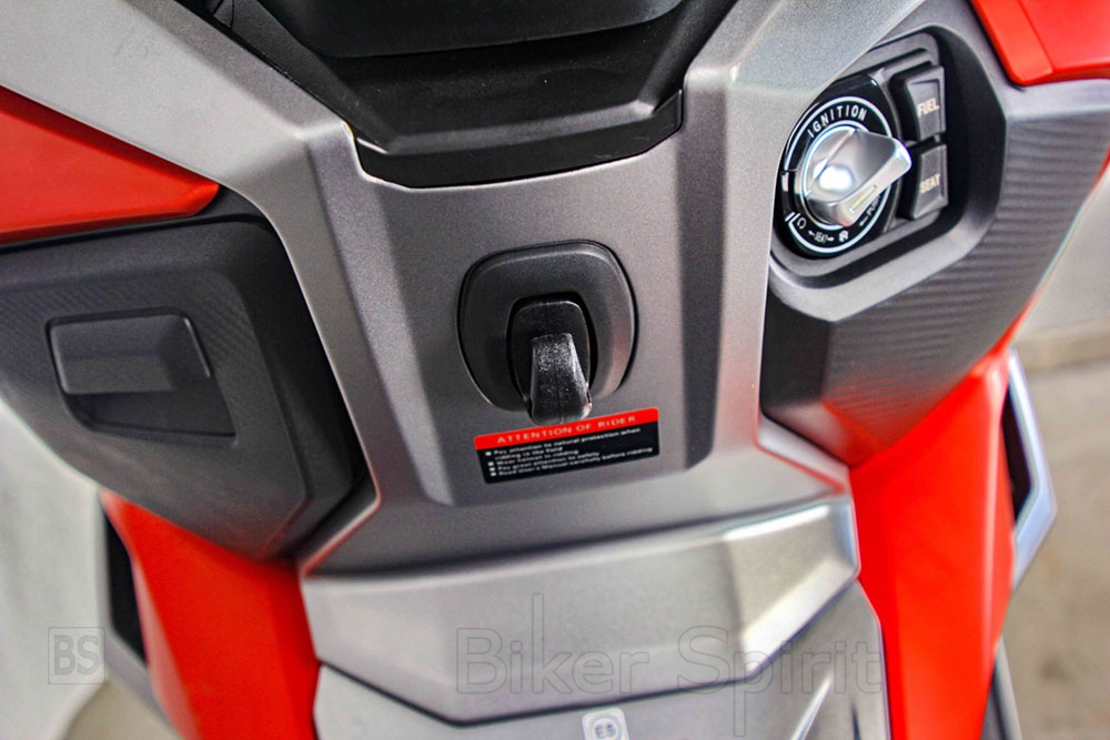Πέραν του Traction Control, το SR1 ADV διαθέτει δικάναλο ΑBS και αξιοζήλευτο επιπρόσθετο (πάντα στάνταρ) εξοπλισμό. Η αεροδυναμική ζελατίνα είναι ηλεκτρονικά ρυθμιζόμενη, η εκκίνηση και όλες οι λειτουργίες γίνονται χωρίς κλειδί, ενώ μια κάμερα (Dash Cam), που βρίσκεται κάτω από τους δύο προβολείς, καταγράφει δεδομένα με εύκολο χειρισμό από μπουτόν στο τιμόνι. Ομοίως μέσω μπουτόν ελέγχεται και η λειτουργία ανοίγματος σέλας και τάπας ρεζερβουάρ, ενώ μια βαθιά θήκη στην ποδιά, το ντουλαπάκι κάτω από το τιμόνι, ο πρακτικός γάντζος στο εσωτερικό της ποδιάς και μια θύρα USB προσφέρουν καλοδεχούμενους πόντους στη χρηστικότητα.