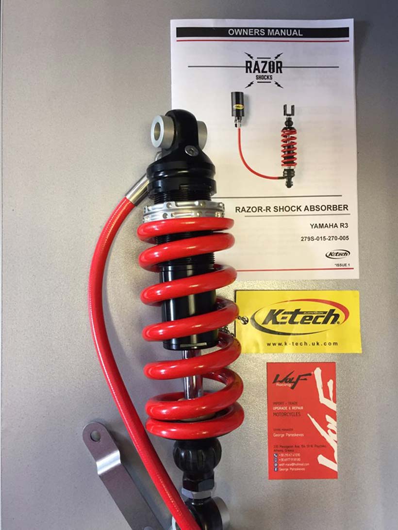 Η Wolf Racing σαν αποκλειστικός αντιπρόσωπος της K-tech (μιας εταιρείας που οι διακρίσεις της στο χώρο των παγκόσμιων πρωταθλημάτων την κάνει κορυφαία στο είδος της) σας παρουσιάζει τον πιο πλήρη και αποδοτικό συνδυασμό για την μικρή μοτοσυκλέτα Yamaha R3.