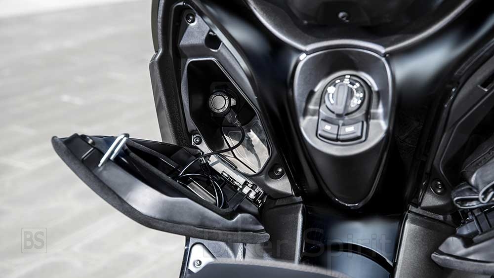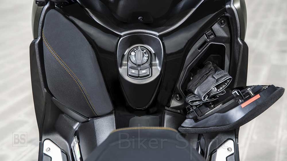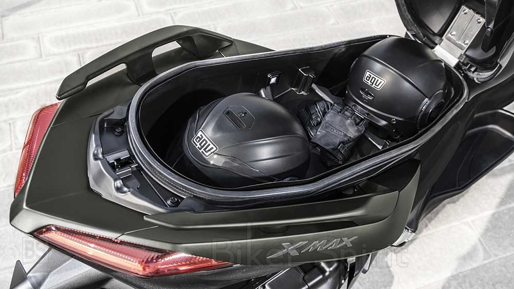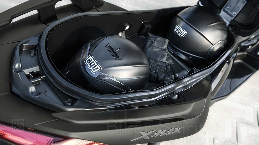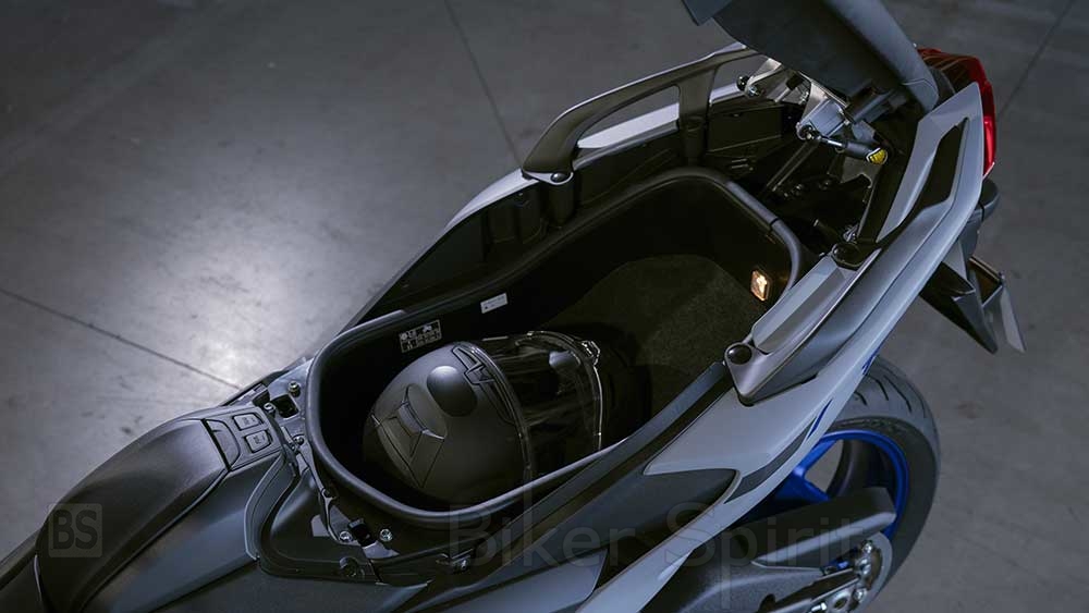 Το TMAX διαθέτει μεγάλο φωτιζόμενο χώρο αποθήκευσης κάτω από τη σέλα, που μπορεί να χωρέσει 1 κράνος full-face ή 2 κράνη τύπου jet. Ο χώρος αποθήκευσης είναι αδιάβροχος, διαθέτει κλειδαριά και είναι ιδανικός για τη μεταφορά ενός χαρτοφύλακα ή άλλων προσωπικών αντικειμένων.