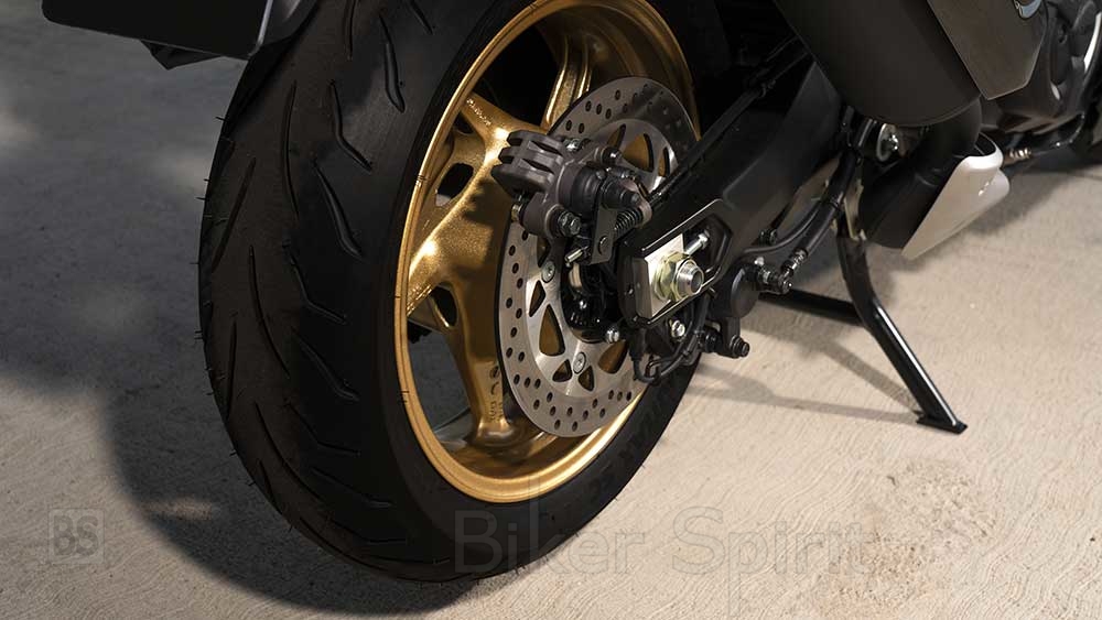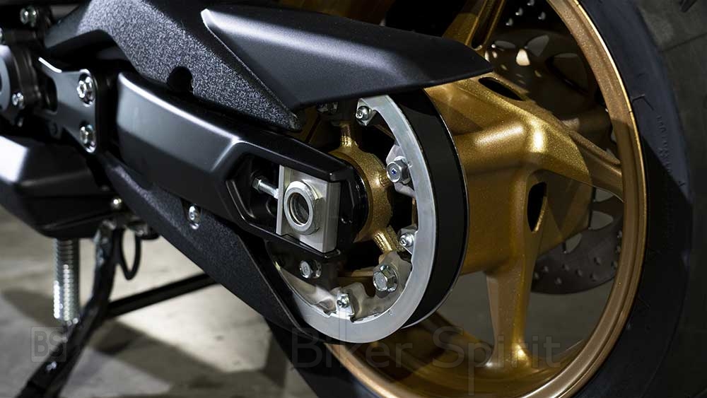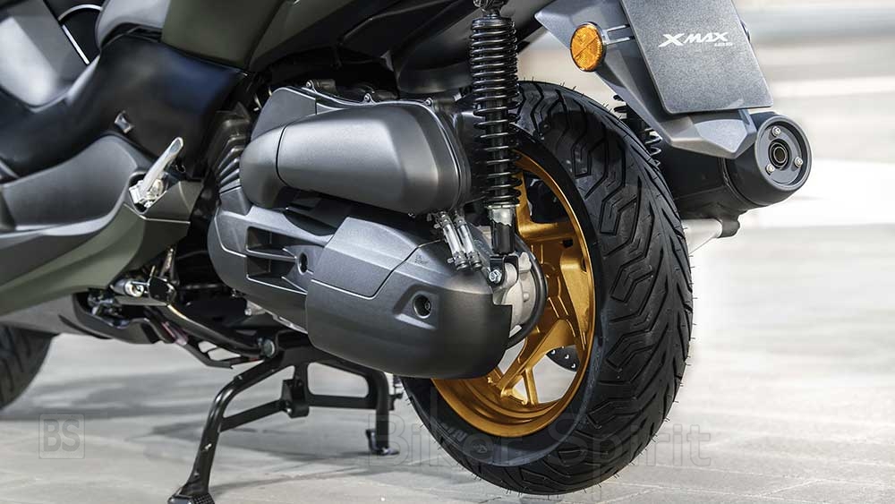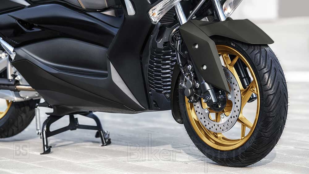 Η πίσω ανάρτηση αυτού του πολυτελούς μοντέλου μπορεί να ρυθμιστεί , οπότε ο αναβάτης μπορεί να προσαρμόζει το σκούτερ του, ανάλογα με το φορτίο και τις συνθήκες οδήγησης, ενώ το υψηλής ποιότητας εσωτερικό ενισχύει την κομψότητα αυτού του κορυφαίου για την κατηγορία μοντέλου. Το πιρούνι σε αυτό το αποκλειστικό μοντέλο διαθέτει χρυσό φινίρισμα.