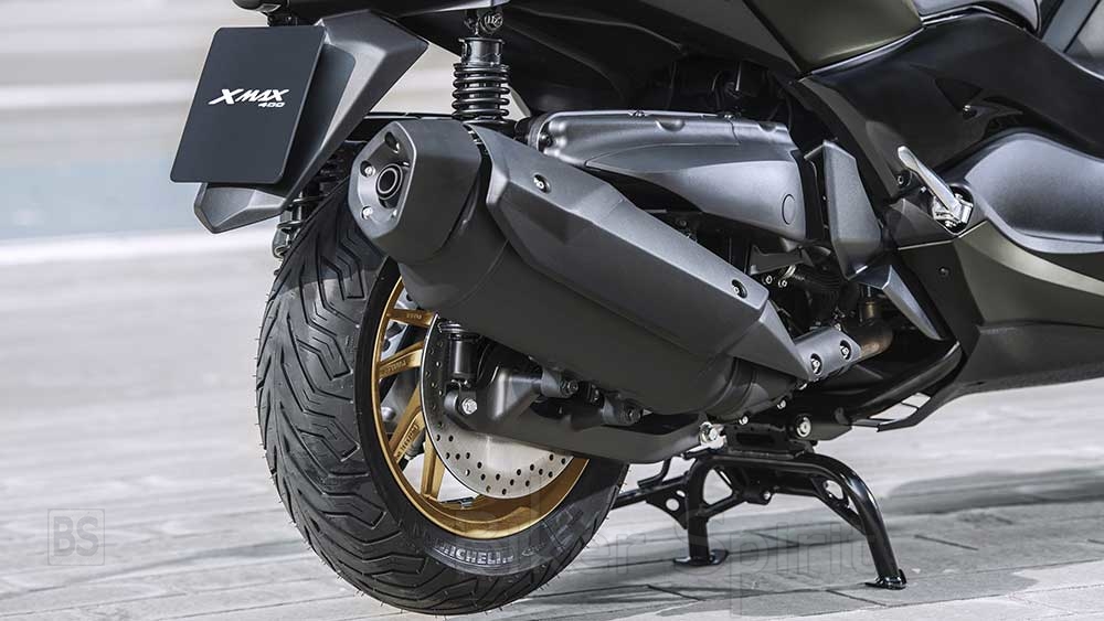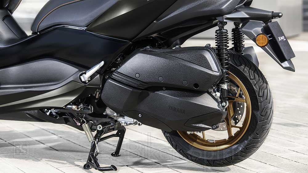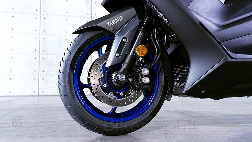 Το νέο TMAX είναι εξοπλισμένο με την πλέον εξελιγμένη ανάρτηση στην κατηγορία sport scooter και διαθέτει ανεστραμμένο πιρούνι 41 χιλ. με ποιοτικό μαύρο φινίρισμα. Αυτό το προδιαγραφών μοτοσυκλέτας πιρούνι παρέχει εξαιρετική ευστάθεια και ακρίβεια κατά την οδήγηση και εξασφαλίζει κορυφαία απόδοση και άνεση στις διαδρομές εντός, αλλά και εκτός πόλης. Το πίσω μέρος είναι ένα από τα πιο εντυπωσιακά στην κατηγορία και περιλαμβάνει σύστημα ανάρτησης Monocross με μοχλικό το οποίο μπορεί να συγκριθεί σε σχεδίαση και απόδοση, με ορισμένα από τα πιο εξελιγμένα συστήματα που χρησιμοποιούνται στις μοτοσυκλέτες μεγάλου κυβισμού της Yamaha.