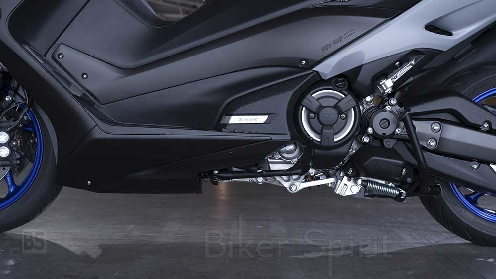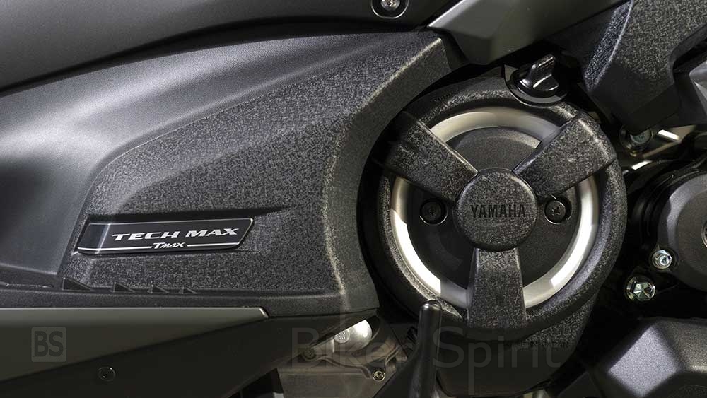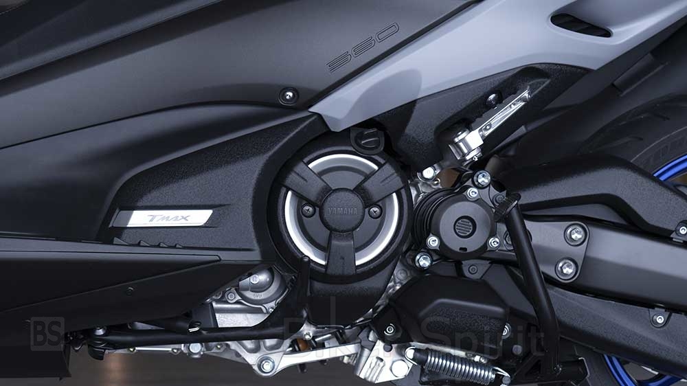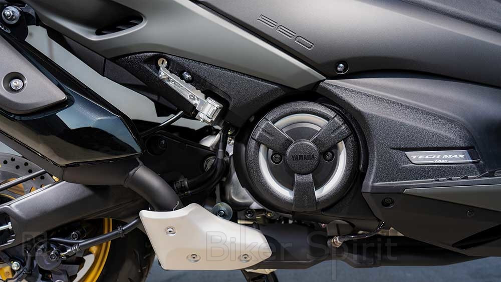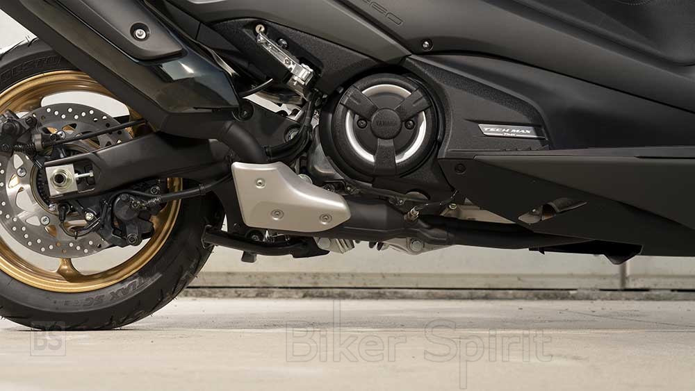 Διαθέτοντας στρόφαλο 360 μοιρών με παλινδρομικό μηχανισμό εξισορρόπησης του εμβόλου με οριζόντια αντικριστή τοποθέτηση ανάμεσα στους δύο κυλίνδρους, ο κινητήρας του ΤΜΑΧ θεωρείται ένας από τους ελαφρύτερους, με τις μικρότερες διαστάσεις και την πιο ομαλή λειτουργία στην κατηγορία maxi scooter . Ο κινητήρας έχει μειωμένους κραδασμούς και χρησιμοποιείται ως δομικό στοιχείο του πλαισίου, για να εξασφαλιστεί μεγαλύτερη ακαμψία και πιο σπορ χαρακτήρας. Παράλληλα, το μικρό φυσικό του μέγεθος εξασφαλίζει περισσότερο χώρο για αποσκευές.