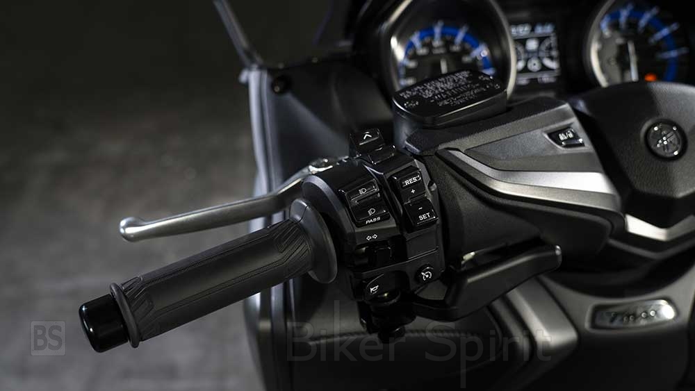 Το σύστημα Cruise Control περιλαμβάνεται επίσης στον βασικό εξοπλισμό του TMAX Tech Max και είναι ιδιαίτερα χρήσιμο στις διαδρομές μεγαλύτερων αποστάσεων, ενώ επίσης βοηθά τον αναβάτη να συμμορφώνεται με τα ισχύοντα όρια ταχύτητας. Μέχρι στιγμής, είναι το μόνο σπορ σκούτερ που διαθέτει αυτήν τη δυνατότητα.
