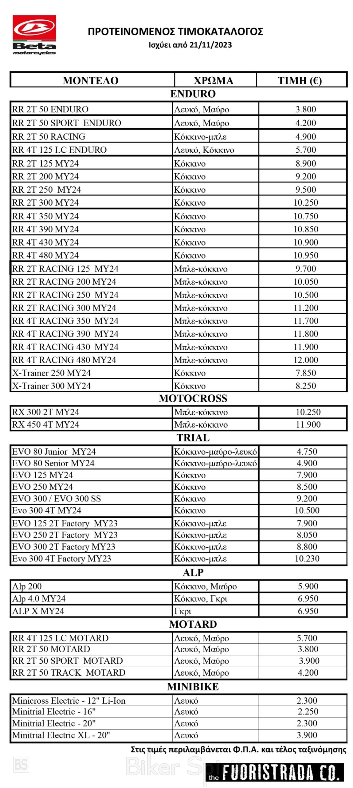 Ανανεωμένος τιμοκατάλογος της Beta Hellas – The Fuoristrada Co για το 2023, στον οποίον έχουν προστεθεί οι νέες Beta RR Racing MY2024: Beta Alp 4.0 και Alp X και Beta RX 450 MY2024
