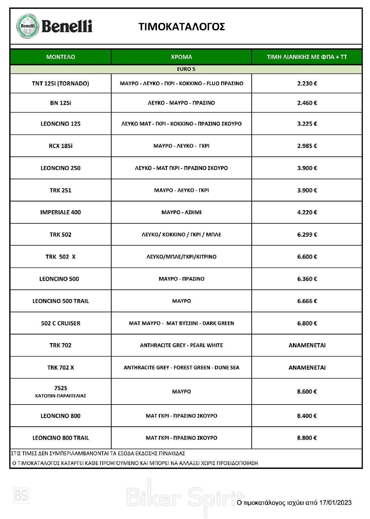 H Motoway, αντιπροσωπεία της Benelli στην Ελλάδα, ανακοίνωσε τον νέο τιμοκατάλογο για το 2023 που περιέχει και τα νέα μοντέλα TRK 702 & TRK 702 X και ισχύει από 17/1/2023.
