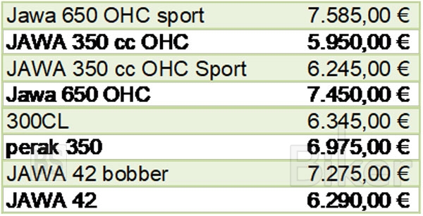 Νέος τιμοκατάλογος JAWA 2024-25 με σημαντικές μειώσεις