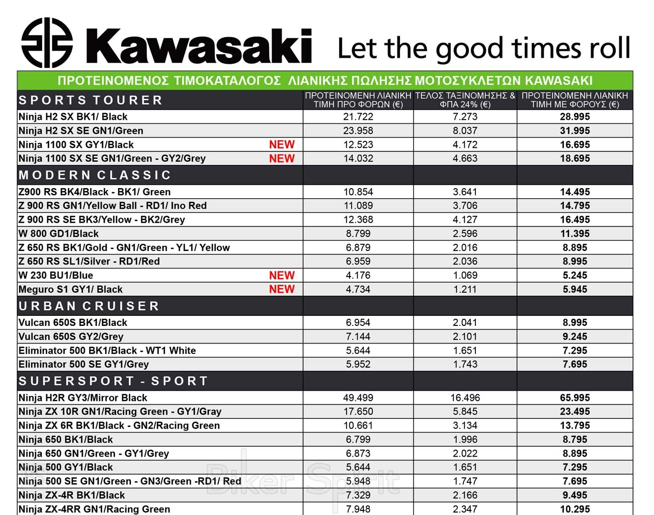 Νέος τιμοκατάλογος KAWASAKI για το 2025