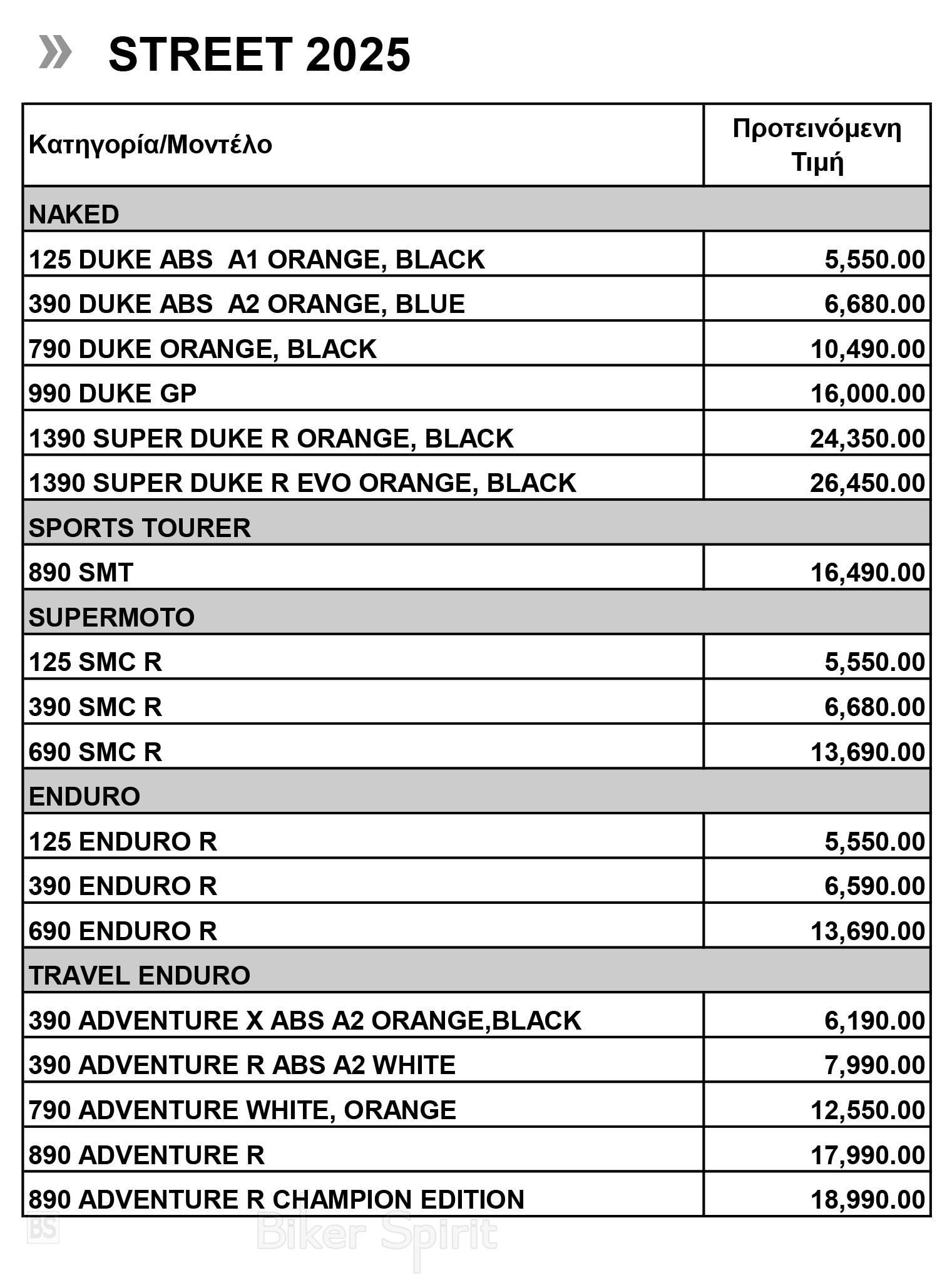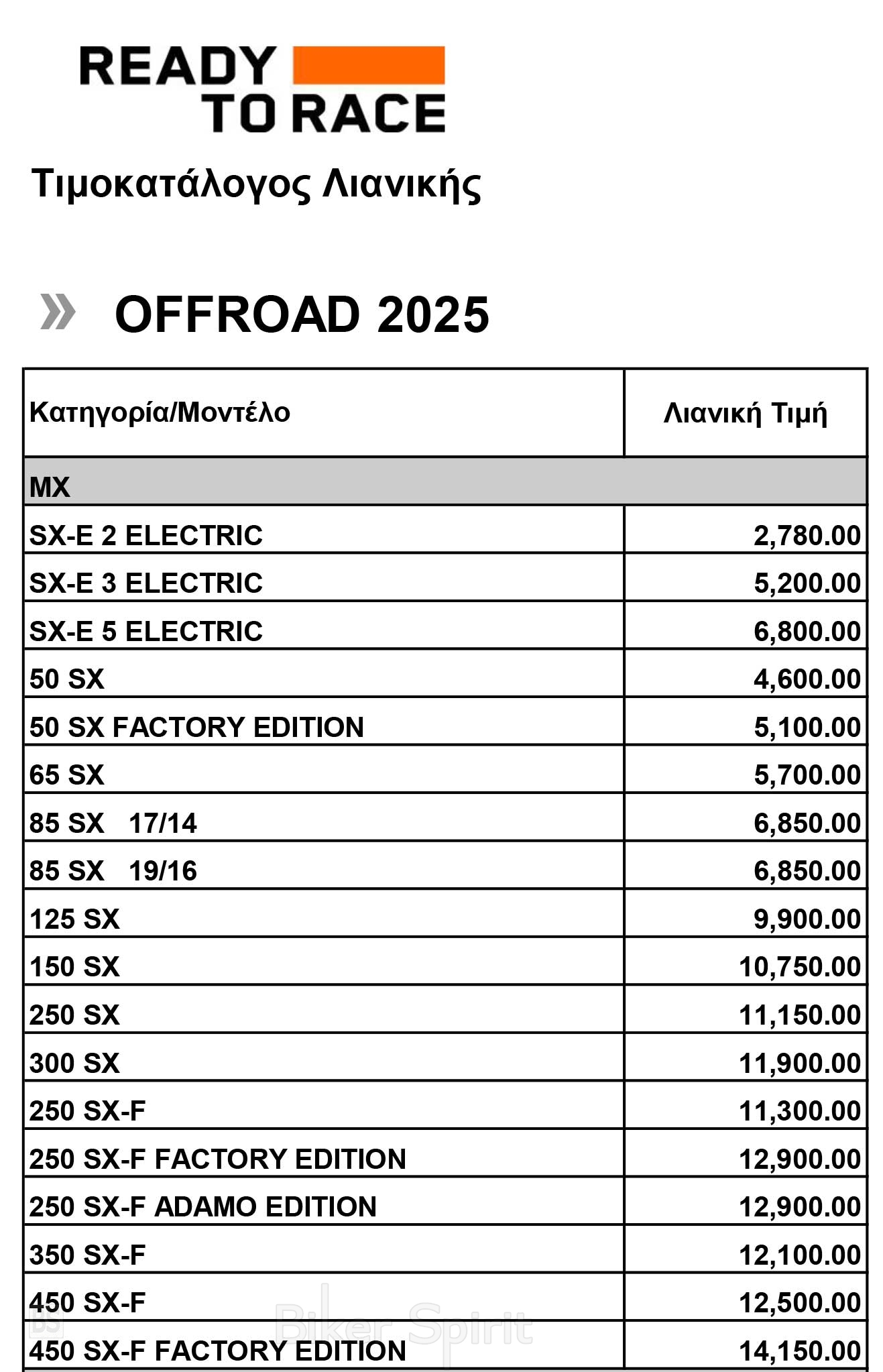Η ΚΤΜ ανακοίνωσε τον νέο της προτεινόμενο τιμοκατάλογο λιανικής της KTM για το 2025.