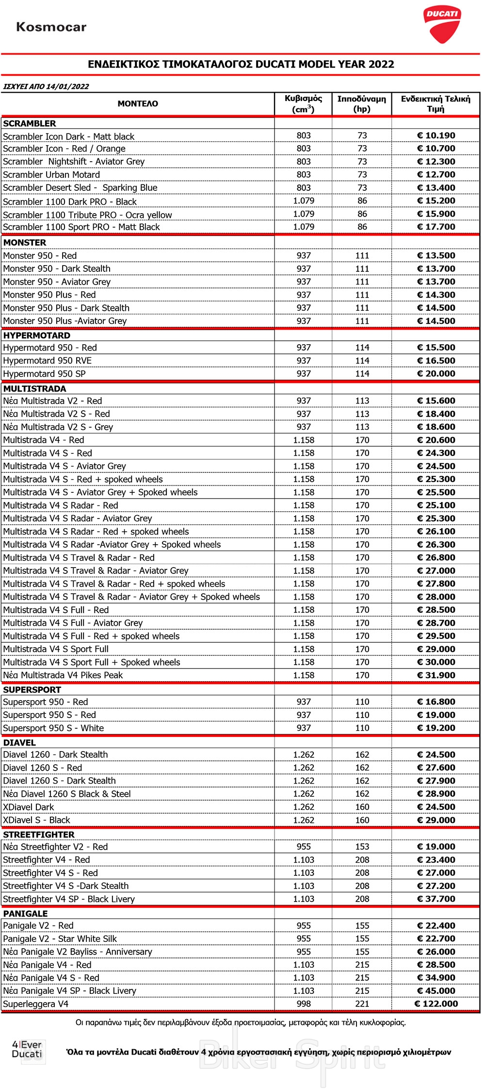 Η Kosmocar–Ducati ανακοίνωσε τον νέο τιμοκατάλογο για τις “ModelYear22” μοτοσυκλέτες της μάρκας από το Borgo Panigale. Ο νέος τιμοκατάλογος περιλαμβάνει όλες τις νέες εκδόσεις των μοτοσυκλετών της Ducati, ενδεικτικά: