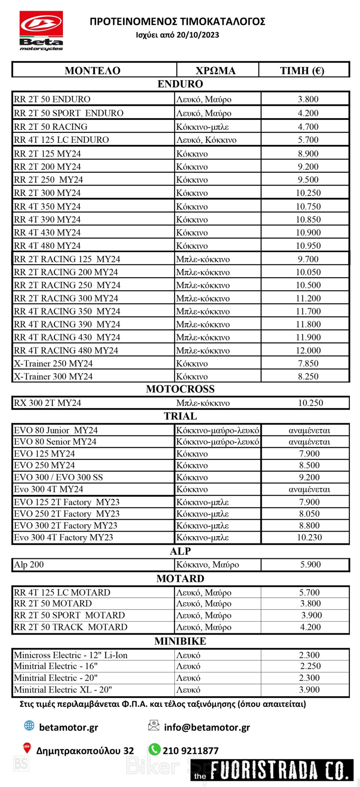 ΤΙΜΟΚΑΤΑΛΟΓΟΙ 2023 Νέος Ανανεωμένος Τιμοκατάλογος μοτοσυκλετών BETA για το 2023 31 October 2023 BikerSpirit Beta, Τιμοκατάλογος, Τιμοκατάλογος 20223, Τιμοκατάλογος Beta 0 min read Ανανεωμένος τιμοκατάλογος της Beta Hellas – The Fuoristrada Co για το 2023, στον οποίον έχουν προστεθεί οι νέες Beta RR Racing MY2024 Randomizer Related Posts Τιμοκατάλογος ZEEHO που περιέχει τις τιμές με επιδότηση ΝΕΟΣ ΤΙΜΟΚΑΤΑΛΟΓΟΣ της Honda Motorcycles 2023 Νέος τιμοκατάλογος μοτοσυκλετών Triumph 2023 Νέος Ανανεωμένος Τιμοκατάλογος μοτοσυκλετών BETA 2023 Νέος Τιμοκατάλογος μοτοσυκλετών YAMAHA 2023 Νέος ανανεωμένος τιμοκατάλογος Suzuki Motorcycles με όλα τα νέα μοντέλα Share this: Share on Facebook (Opens in new window) Facebook Share on X (Opens in new window) X Share on LinkedIn (Opens in new window) LinkedIn Print (Opens in new window) Print More Share on Reddit (Opens in new window) Reddit Share on Tumblr (Opens in new window) Tumblr Share on Pinterest (Opens in new window) Pinterest Related