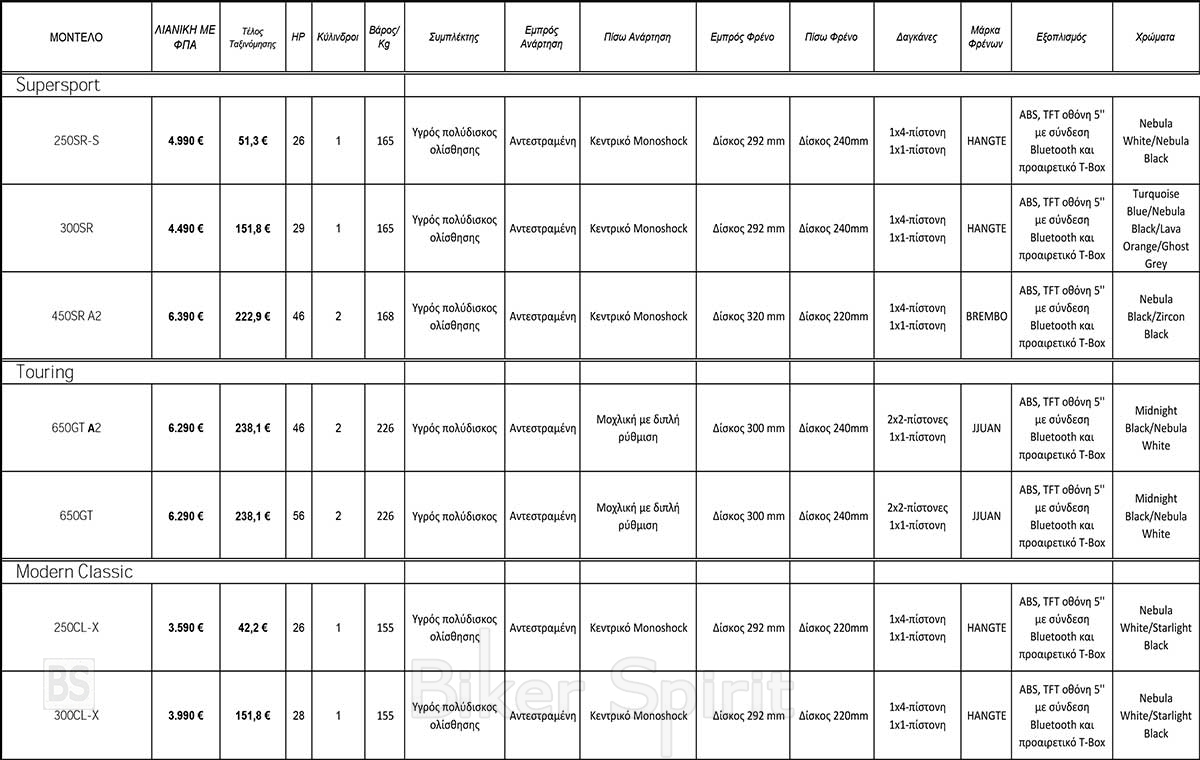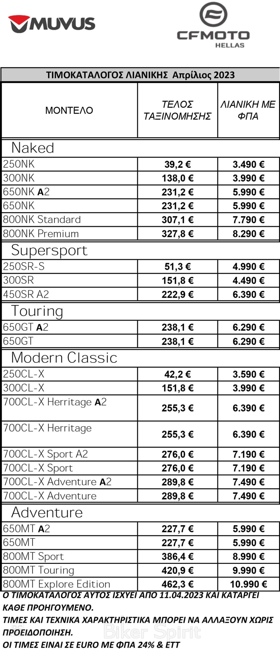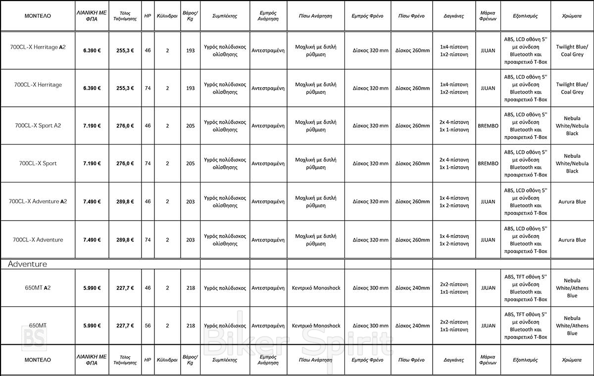 Επίσης η CFMOTO έχει προχωρήσει σε μειώσεις τιμών στα 800MT Touring (-400€), 650MT & 650GT (-300€) και CLX Adventure (-200€) ώστε να γίνουν ακόμη πιο προσιτά σε όσους θέλουν να αποκτήσουν μια μοτοσυκλέτα CFMOTO.