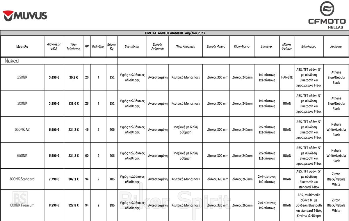 Νέος τιμοκατάλογος μοτοσυκλετών CFMOTO για το 2023 με μειωμένες τιμές και προσφορές
