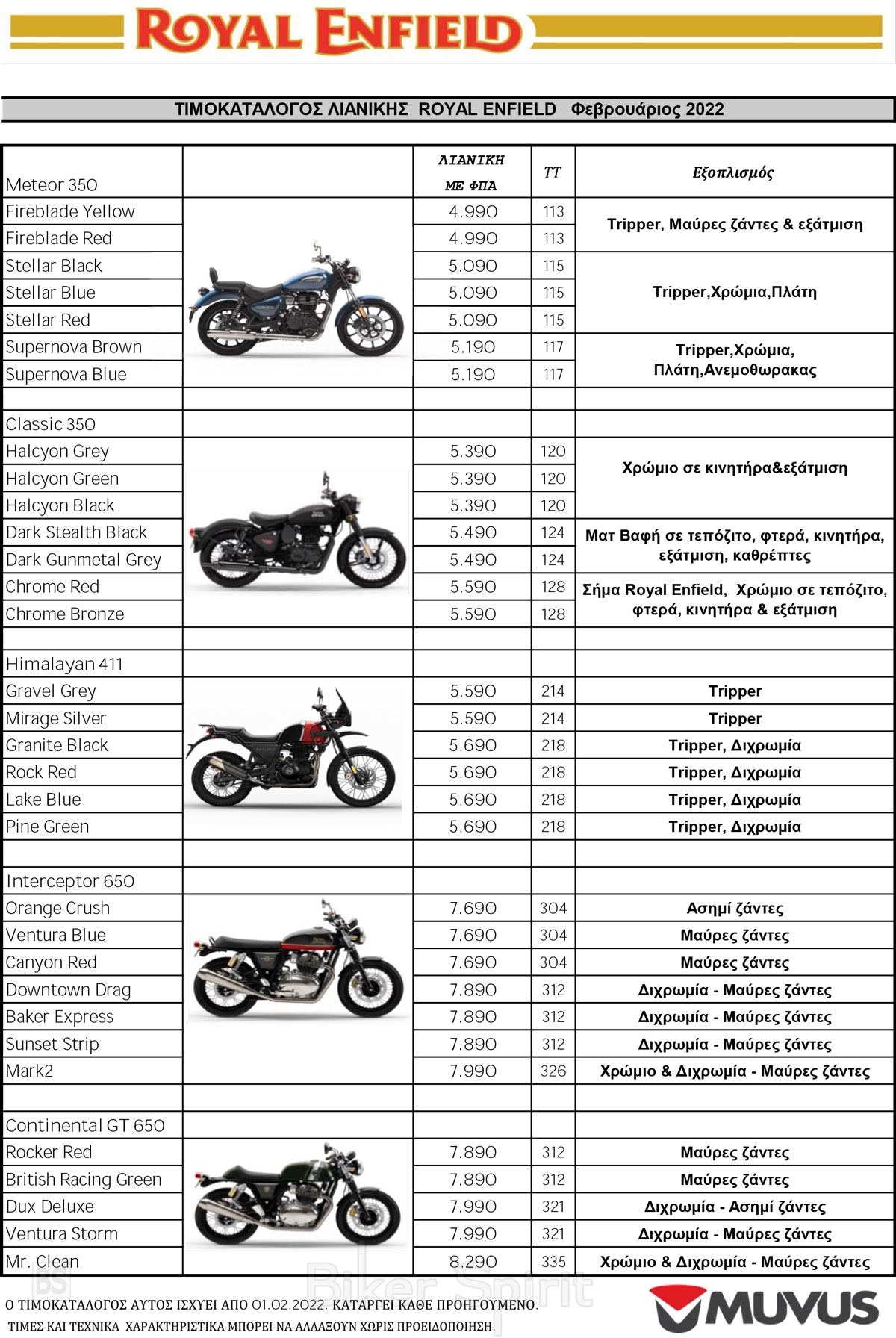 Royal EnfieldΤΙΜΟΚΑΤΑΛΟΓΟΙ 2022 Νέος τιμοκατάλογος μοτοσυκλετών ROYAL ENFIELD 2022 17 January 2022 BikerSpirit Royal Enfield, Τιμοκατάλογος, τιμοκατάλογος 2022 0 min read Η ROYAL ENFIELD έδωσε το καινούριο ανανεωμένο της τιμοκατάλογο μοτοσυκλετών για το 2022, με ισχύ από 1η Φεβρουαρίου 2022 Randomizer Related Posts H Royal Enfield στην EICMA 2024 – Δείτε ένα VIDEO και Φωτογραφίες για το τι παρουσίασε στο Μιλάνο Νέα Royal Enfield Shotgun 650 – VIDEO – Φωτογραφίες Νέες Royal Enfield Himalayan 450 και Bullet 350 – Δείτε τις τιμές τους – Φωτογραφίες – VIDEO Νέα χρώματα Royal Enfield Interceptor 650 & Continental GT 650 Τιμοκατάλογος μοτοσυκλετών AJP 2022 Η Royal Enfield HNTR 350 ήρθε στην Ελλάδα – Δείτε την τιμή της Share this: Share on Facebook (Opens in new window) Facebook Share on X (Opens in new window) X Share on LinkedIn (Opens in new window) LinkedIn Print (Opens in new window) Print More Share on Reddit (Opens in new window) Reddit Share on Tumblr (Opens in new window) Tumblr Share on Pinterest (Opens in new window) Pinterest Related