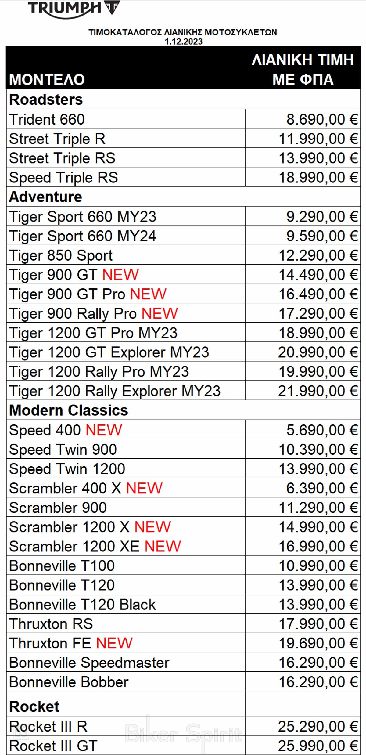 ΤΙΜΟΚΑΤΑΛΟΓΟΙ 2023 Νέος τιμοκατάλογος μοτοσυκλετών Triumph 2023 1 December 2023 BikerSpirit Triumph, Triumph 2023 0 min read Η Triumph έδωσε το καινούριο ανανεωμένο της τιμοκατάλογο μοτοσυκλετών για το 2023, με όλα τα νέα μοντέλα της εταιρείας με ισχύ από 1.12.2023 Randomizer Related Posts Τιμοκατάλογος ZEEHO που περιέχει τις τιμές με επιδότηση ΝΕΟΣ ΤΙΜΟΚΑΤΑΛΟΓΟΣ της Honda Motorcycles 2023 Νέος Ανανεωμένος Τιμοκατάλογος μοτοσυκλετών BETA 2023 Νέος Τιμοκατάλογος μοτοσυκλετών YAMAHA 2023 Νέος ανανεωμένος τιμοκατάλογος Suzuki Motorcycles με όλα τα νέα μοντέλα Νέος Ανανεωμένος Τιμοκατάλογος μοτοσυκλετών BETA για το 2023 Share this: Share on Facebook (Opens in new window) Facebook Share on X (Opens in new window) X Share on LinkedIn (Opens in new window) LinkedIn Print (Opens in new window) Print More Share on Reddit (Opens in new window) Reddit Share on Tumblr (Opens in new window) Tumblr Share on Pinterest (Opens in new window) Pinterest Related