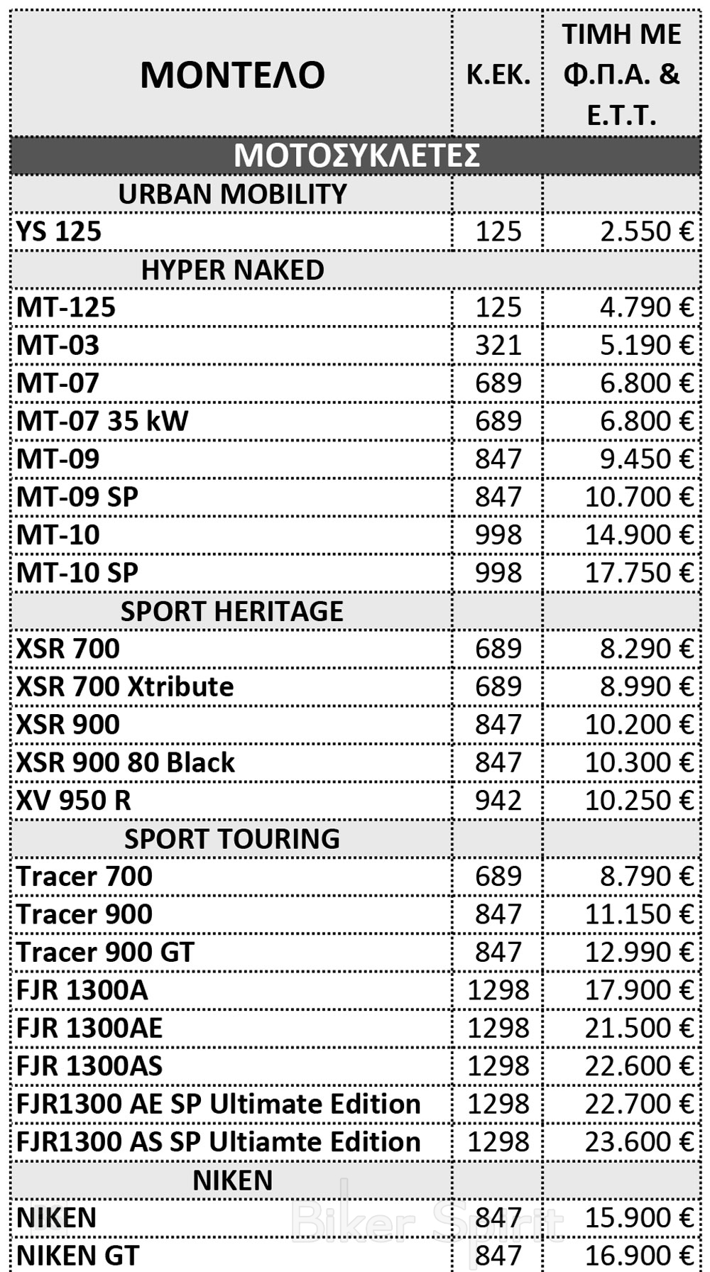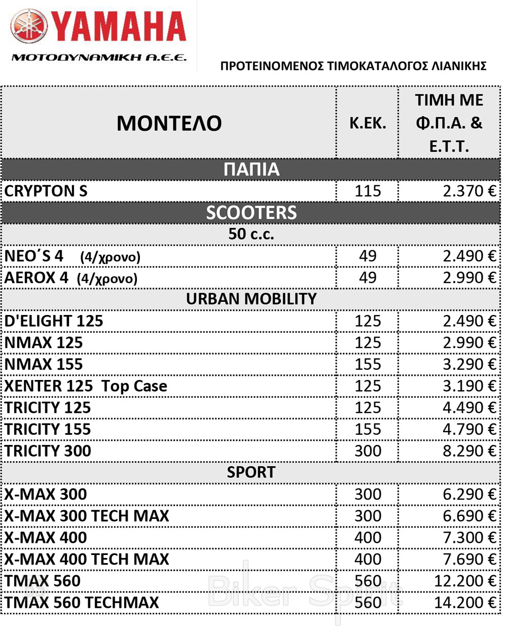 Η Ελληνική αντιπρόσωπος της Yamaha, Μοτοδυναμική Α.Ε. ανακοίνωσε τον νέο της τιμοκατάλογο με ισχύ από 30.06.2020
